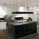 Decorative trim elements and natural materials, in particular wood, clay, stone and houseplants, will help to avoid an industrial look in the interior. These nuances will allow you to create a black kitchen in the spirit of classicism. Such an interior will look decent, especially if there are wall cabinets with glass doors, which will visually facilitate the design. At the same time, a black headset in a classic style can look somewhat bulky, so you need to take care of a light background and sufficient lighting.