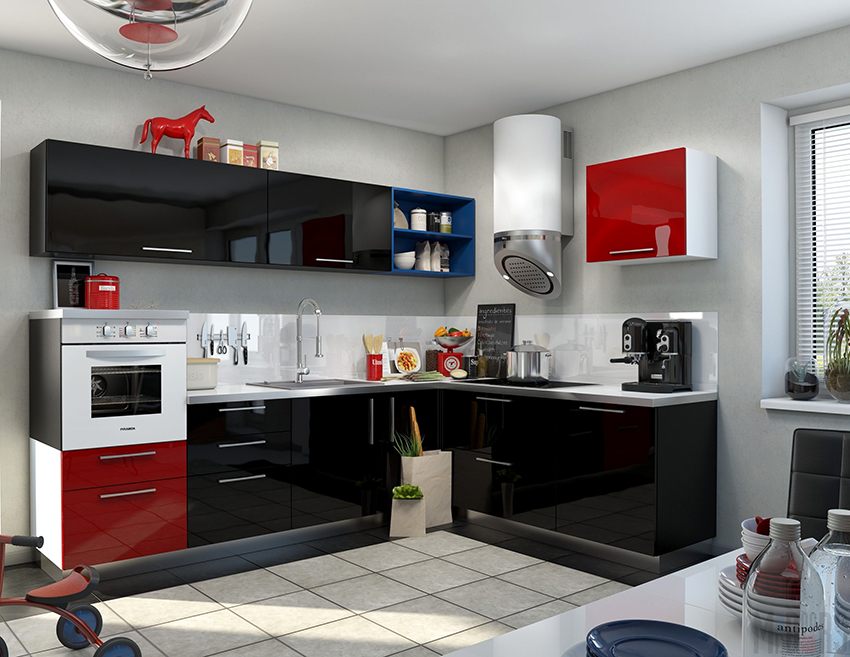 The kitchen in red and black color cannot be called ordinary. This design is the choice of freedom-loving and extraordinary personalities who keep up with fashion. To create a successful design in these colors, you must first choose a dominant color. Most often it is red, and its chic and dramatic effect is effectively emphasized by black, giving the interior an additional sophistication and exclusivity.