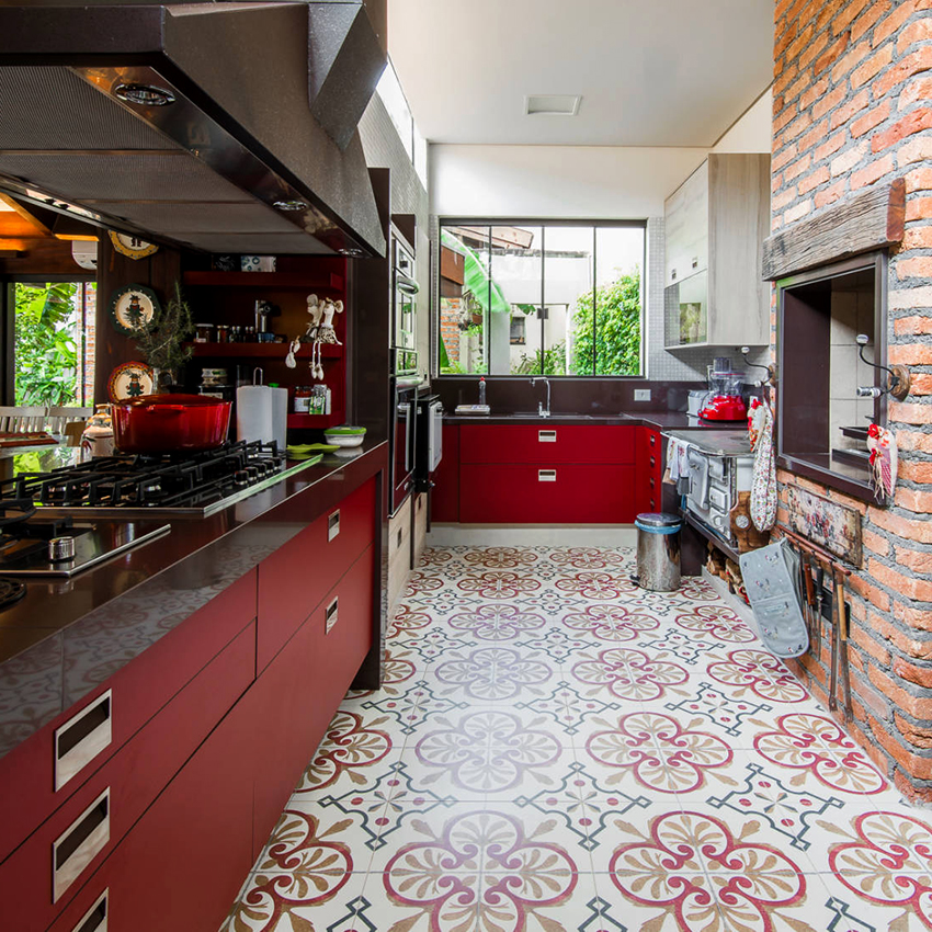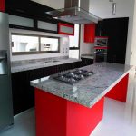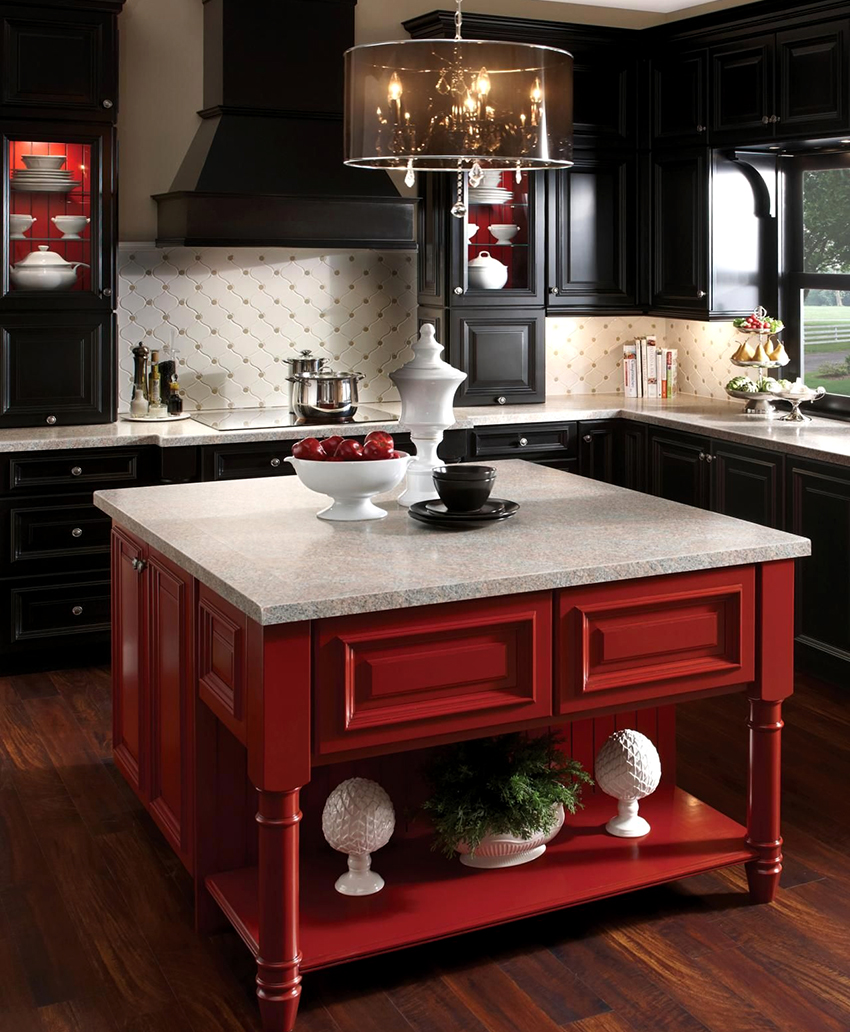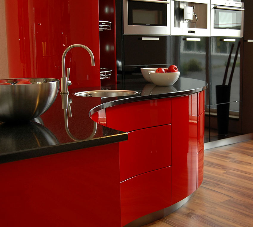 - the main one is red, and black is used to decorate the apron, countertop and other details.