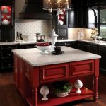 Useful advice! To black-red kitchen has sounded in a new way, you can place a black headset against the background of walls painted in red. Additional chic and glamor will be given by a chandelier with crystal pendants and crystal inlaid furniture, accessories and appliances.