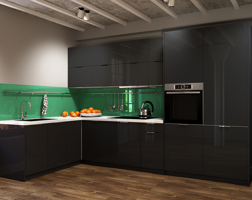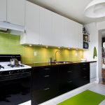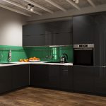 In a black and green kitchen, a tandem of calm and extravagant colors enhances the space visually, creating natural depth and a fantastic atmosphere. This combination looks good in harmony with steel parts and frosted glass. Kitchens decorated in contrasting colors, where black is combined with a bright shade, are ultramodern, non-standard, minimalism and comfort dominate in their design.
