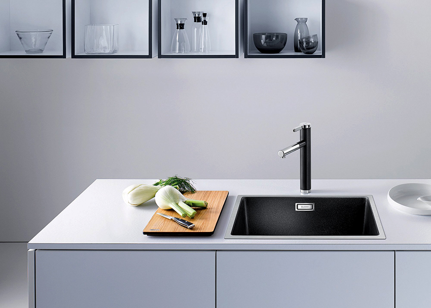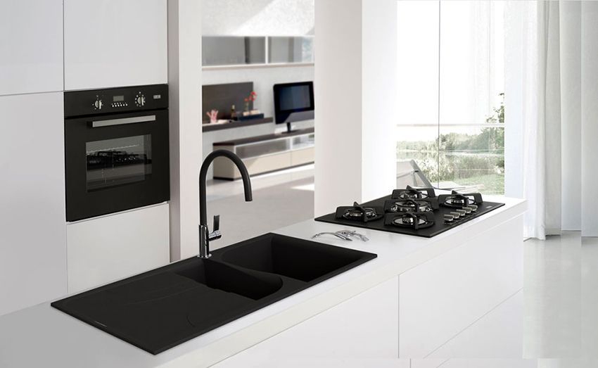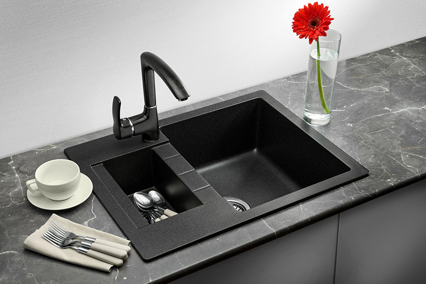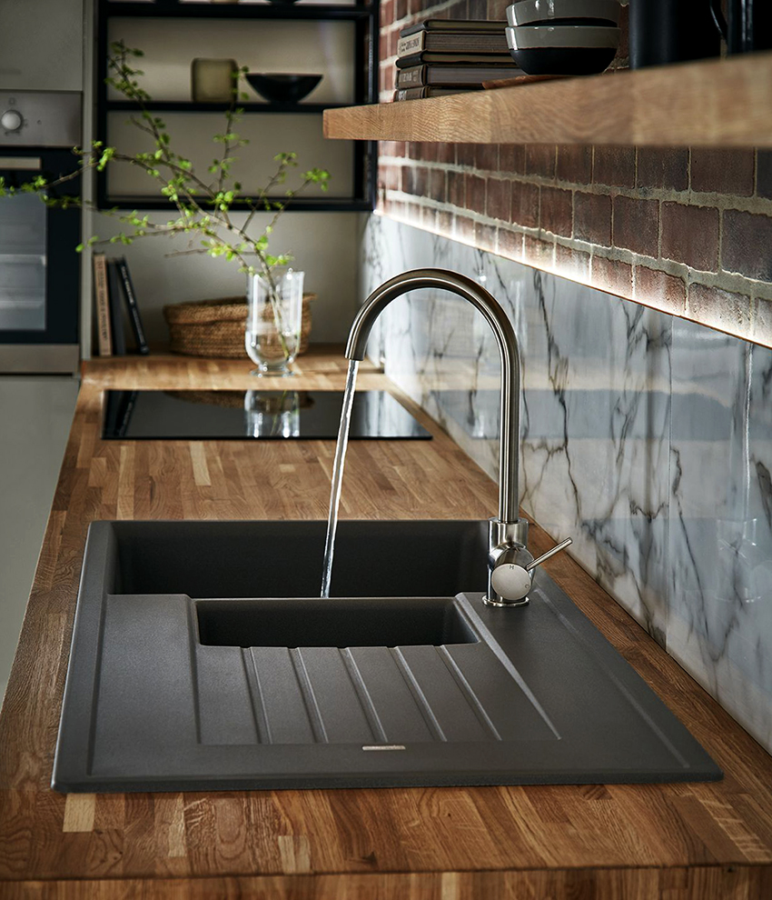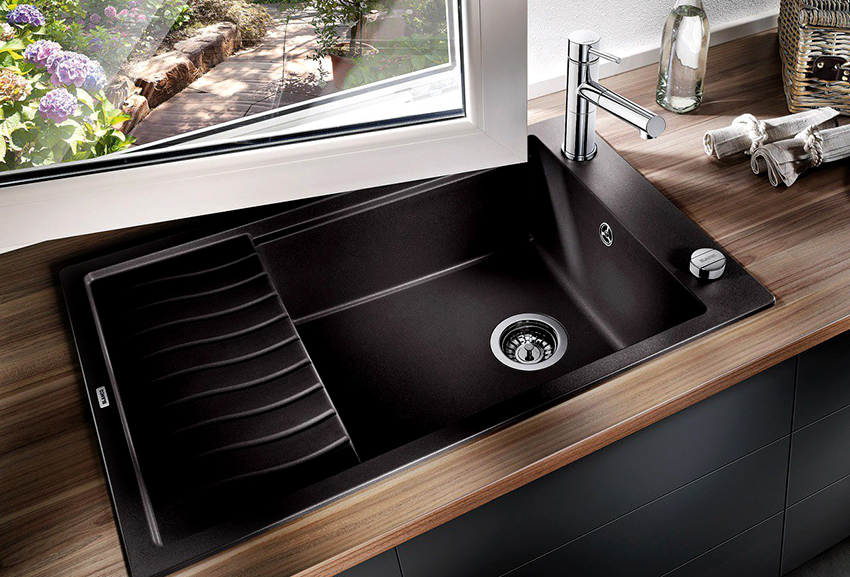 An ordinary sink made of stainless steel or galvanized steel in a modern kitchen looks somehow ordinary and trite. A black sink, regardless of style, can look sophisticated and original, but the main feature of a product of this color is its versatility. You can install a black sink in any kitchen (classic, modern, minimalist or hi-tech). At the same time, it will successfully complement the work area without attracting attention to itself.