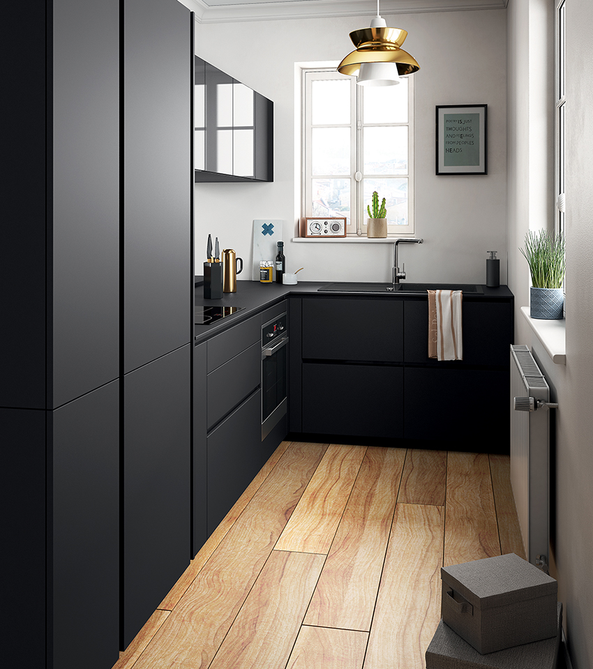- 3 Black kitchen set: features of shapes, materials and finishes
