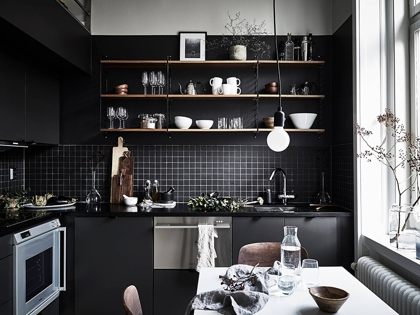 Black color in clothing design has always personified solemnity, elegance and delicate taste. An example is the classic men's tailcoats and the timeless little black sheath dress from the unsurpassed Coco Chanel. At the same time, in interior design, the approach to black is significantly different. Here, a minimal error in the balance of colors can lead to the fact that academic blackness will turn into a source of oppressed mood with an oppressive atmosphere, and it is in the kitchen that comfort and coziness should dominate.