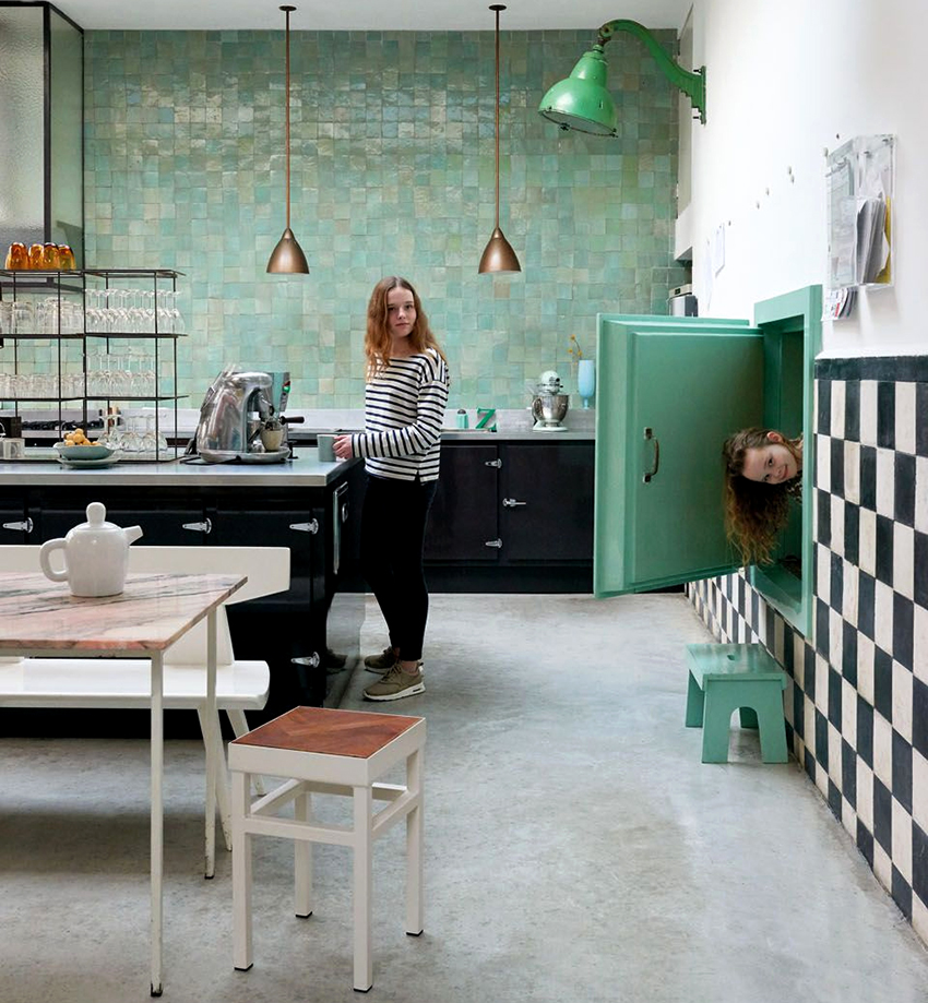 - lay black tiles on the kitchen floor;
