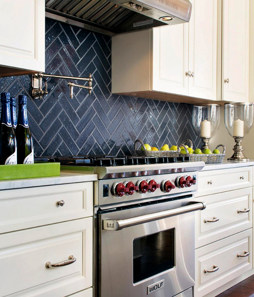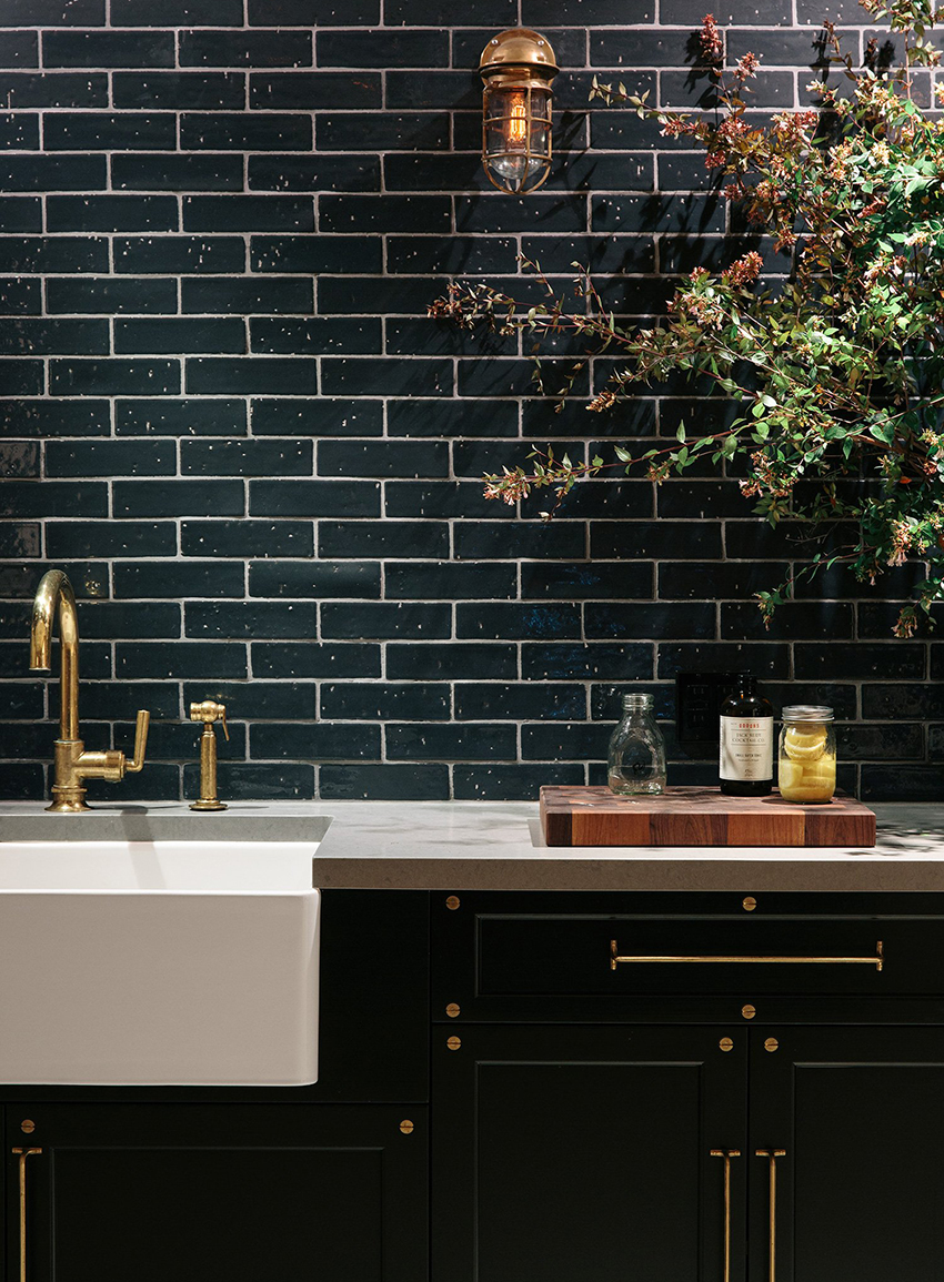 - An apron made of black tiles in the kitchen, made of bricks with a special impregnation, is not afraid of moisture and temperature changes, so it will look great in an interior of any style and in combination with different facades.