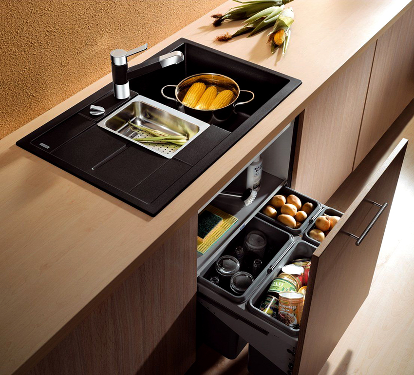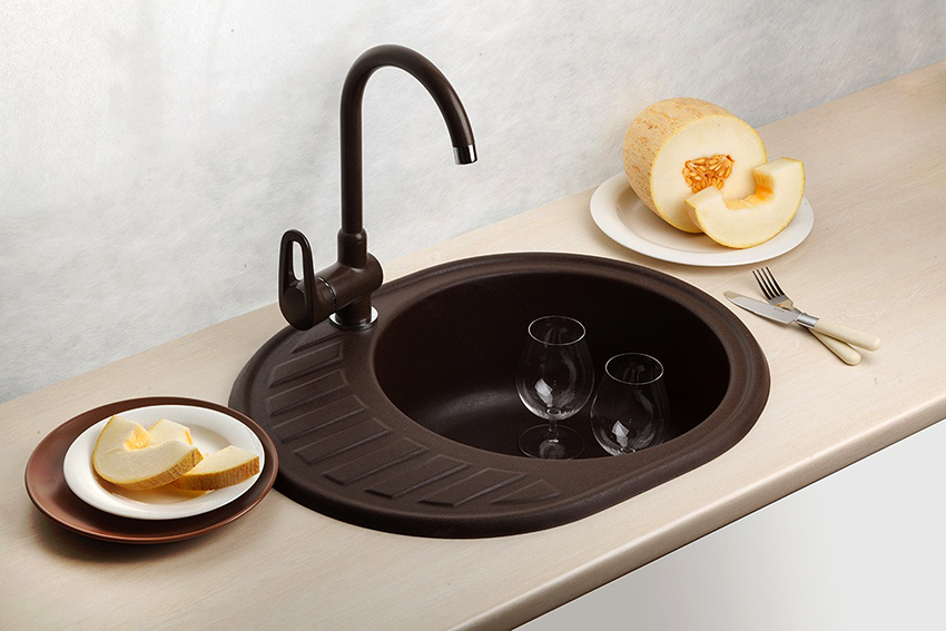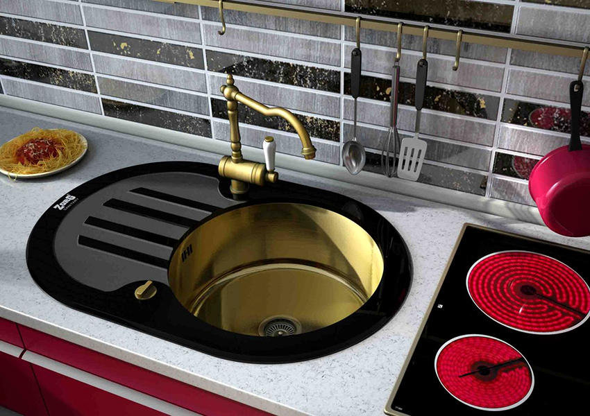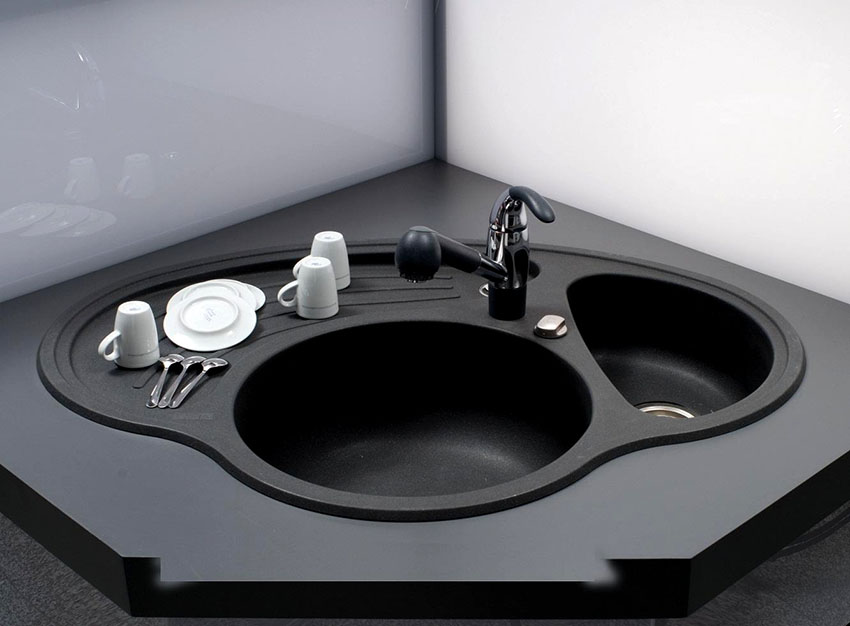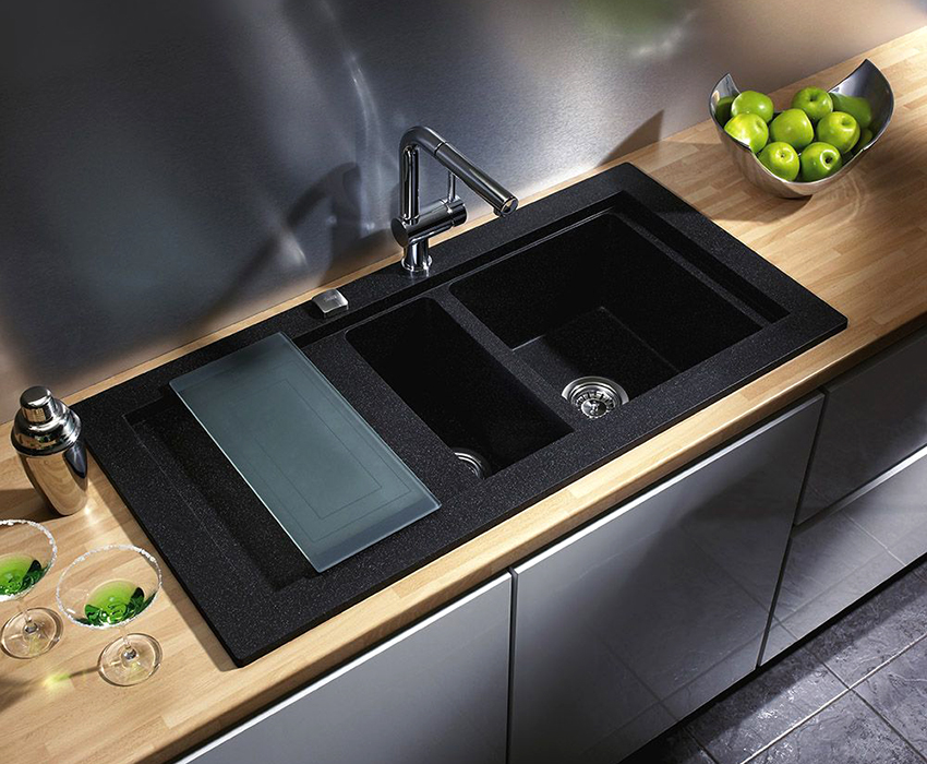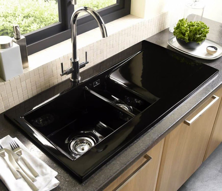 Plus, the black kitchen sink is less noticeable for defects and dirt.Caring for her is much easier using ordinary improvised means. At the same time, this piece of furniture not only performs a practical function, but can also become a highlight of the working area. Therefore, when choosing a sink, you must pay attention to the material and shape of the product.