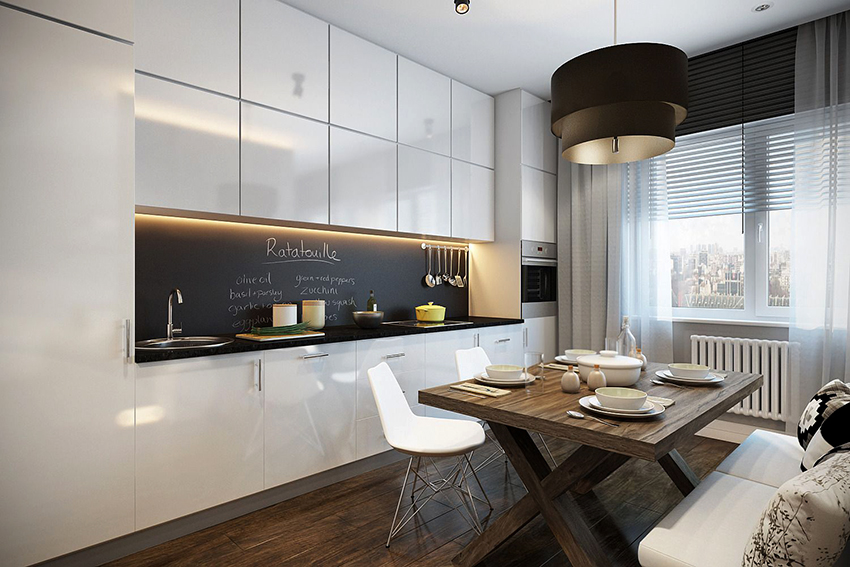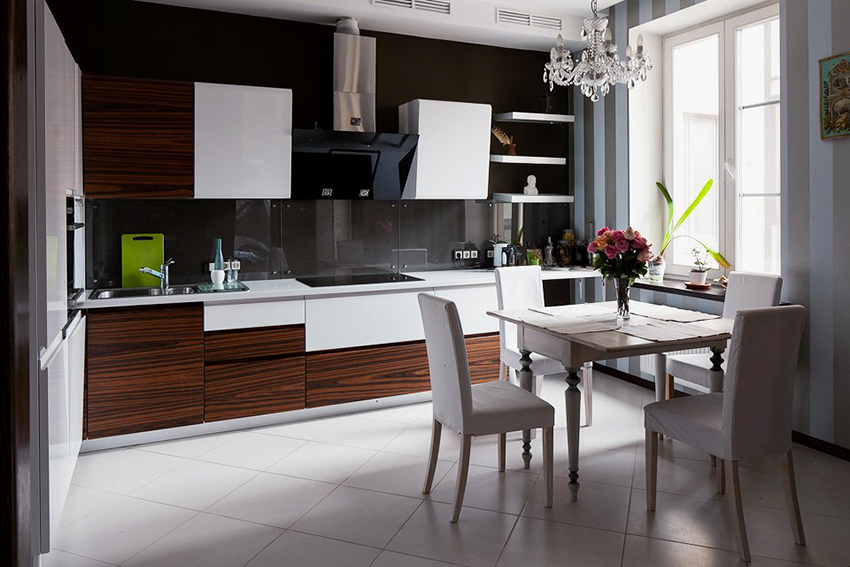 The predominance of white will help expand the kitchen space, which is especially important for small kitchens. The abundance of black will add mystery, seriousness and austerity to the room. Its dominance is acceptable in spacious kitchens. The optimal choice of design for white and black kitchens is a proportional distribution of two contrasting tones, which can be expressed as follows: