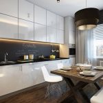 - It is possible to create chic apartments in kitchens of different sizes under the conditions of a competent approach to design and creating an abundance of light in the room.