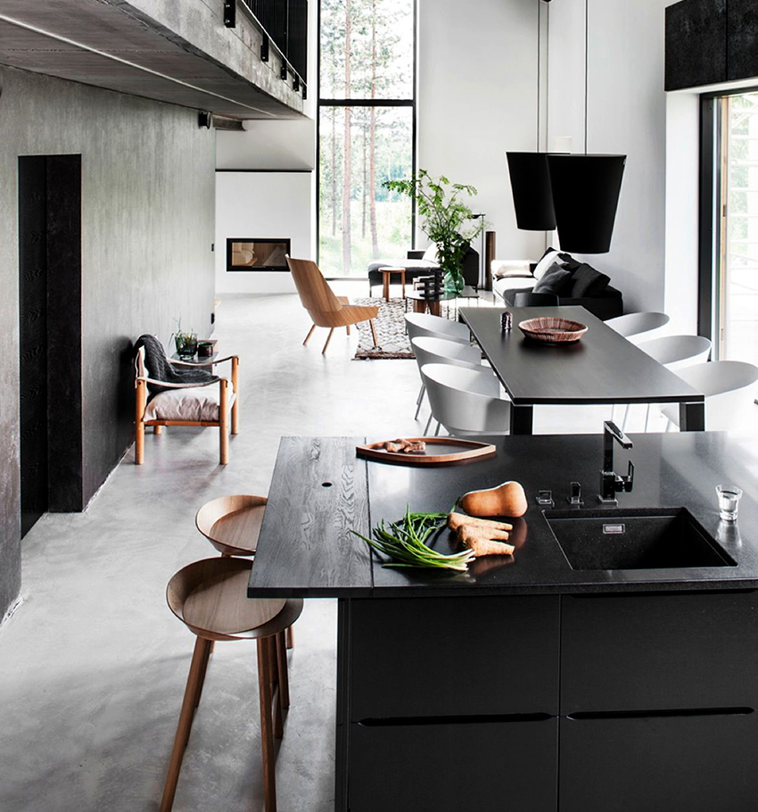 Black countertop: the rules of combination and the question of practicality