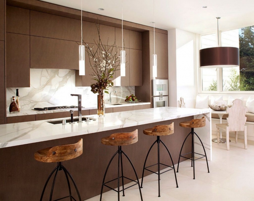 The kitchen belongs to the category of premises with difficult operating conditions, where furniture, as well as wall decoration, are exposed to significant loads every day. For this reason, it is necessary to give preference to practical and durable materials that are not afraid of temperature extremes, the influence of high humidity and regular contamination.