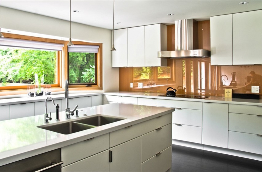 Polycarbonate sheets are considered the most practical option. They can have a glossy or matte finish. Their size range is diverse. The surface of polycarbonate products allows you to apply any patterns and designs. In the photo of chic kitchens, you can see unusual options for sheets with a textured surface.