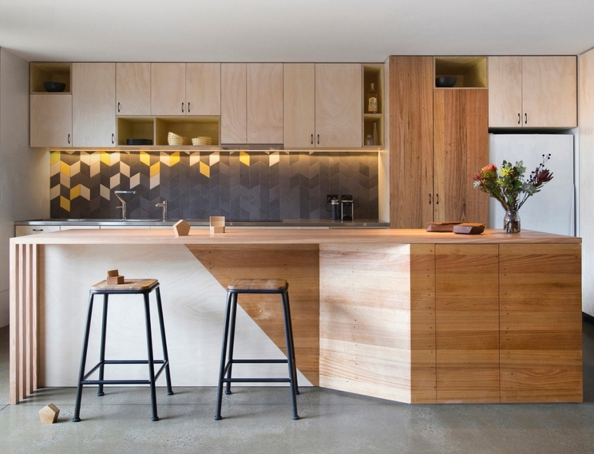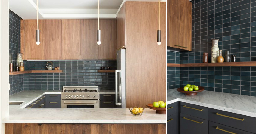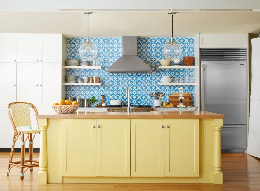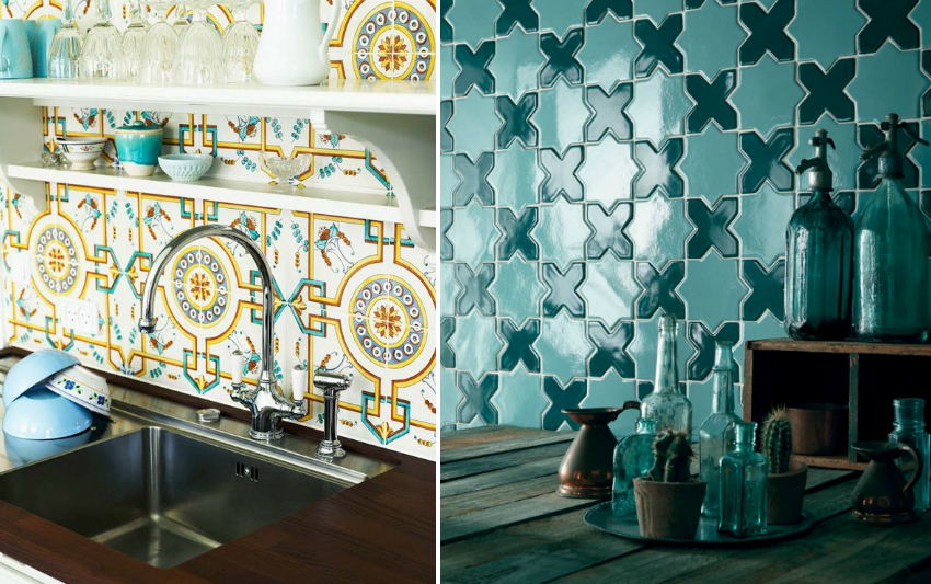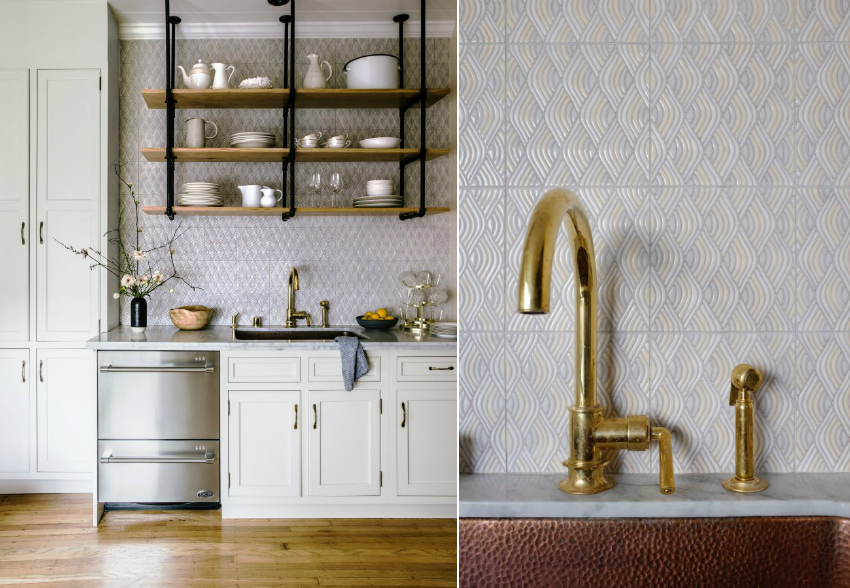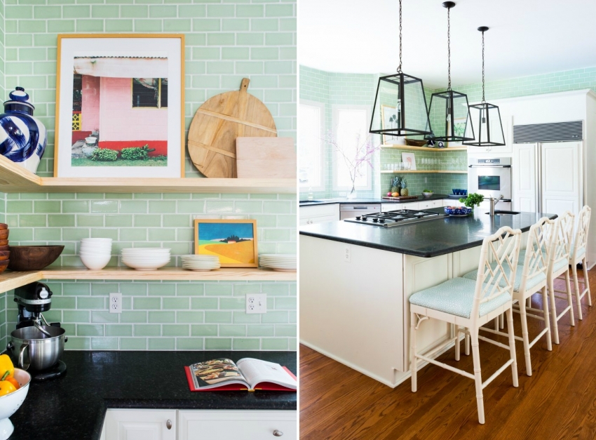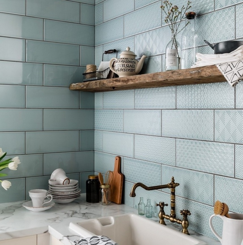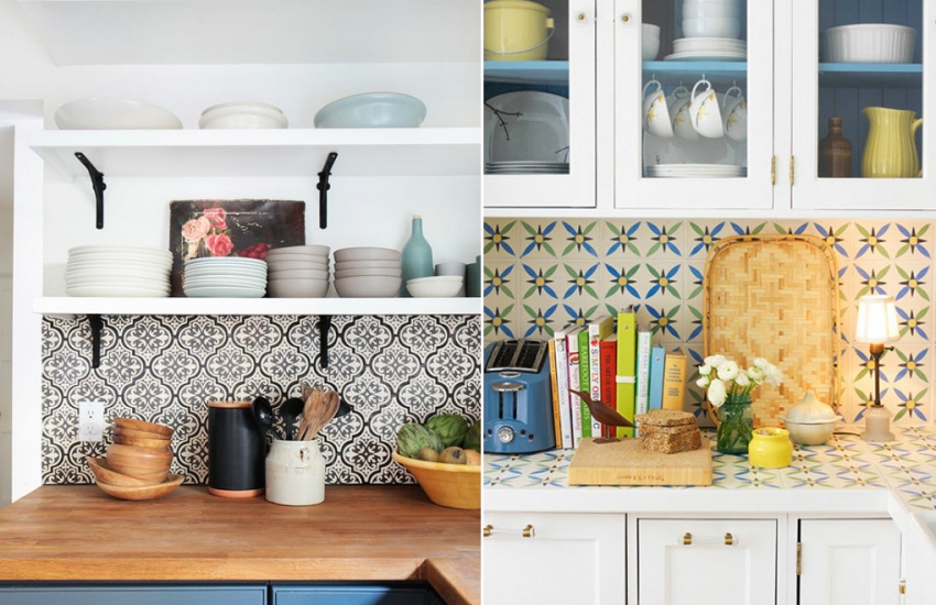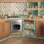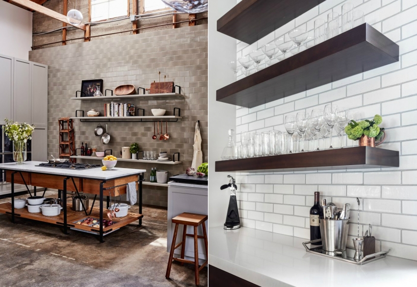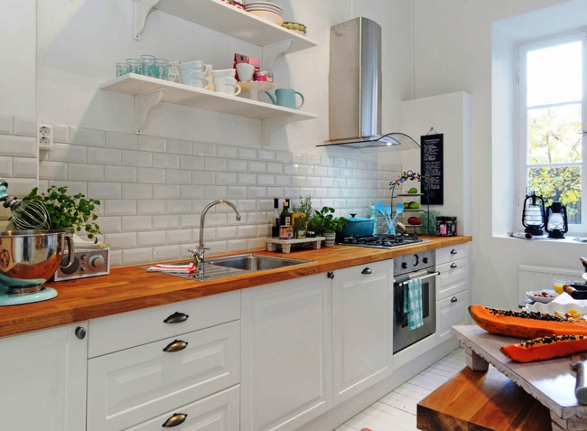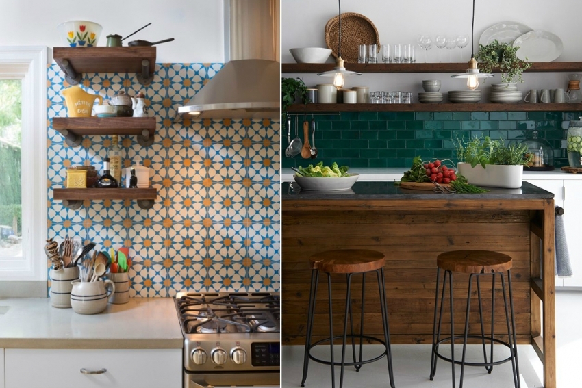 At registration apron kitchen with open shelves, tiles with an interesting ornament or shape should be used
