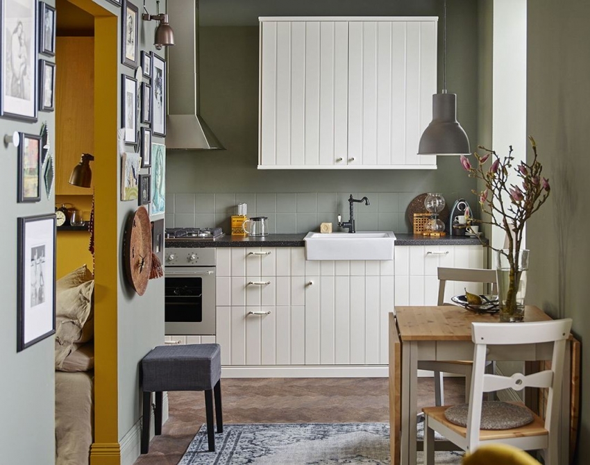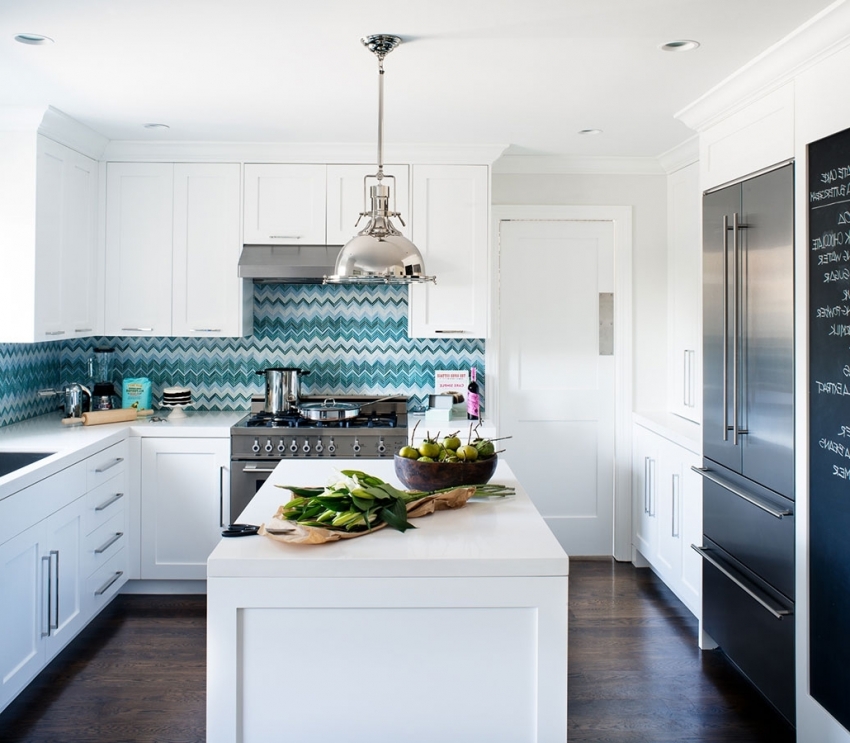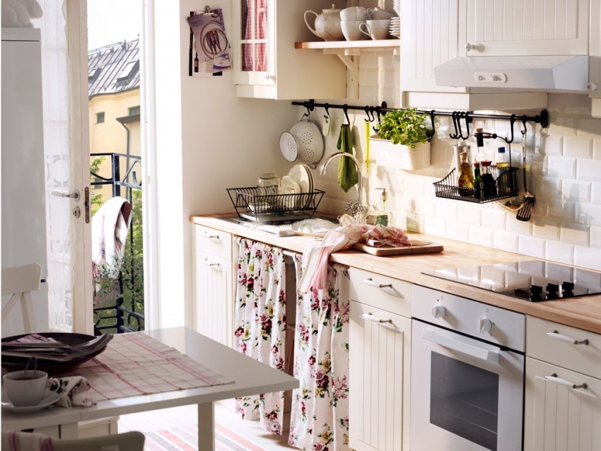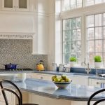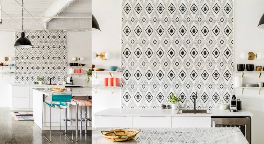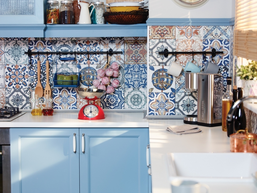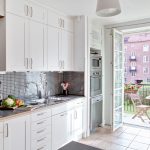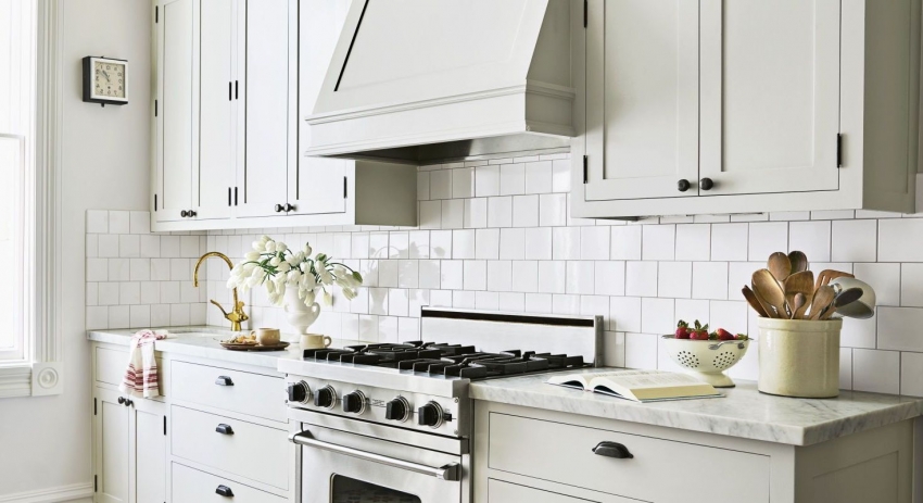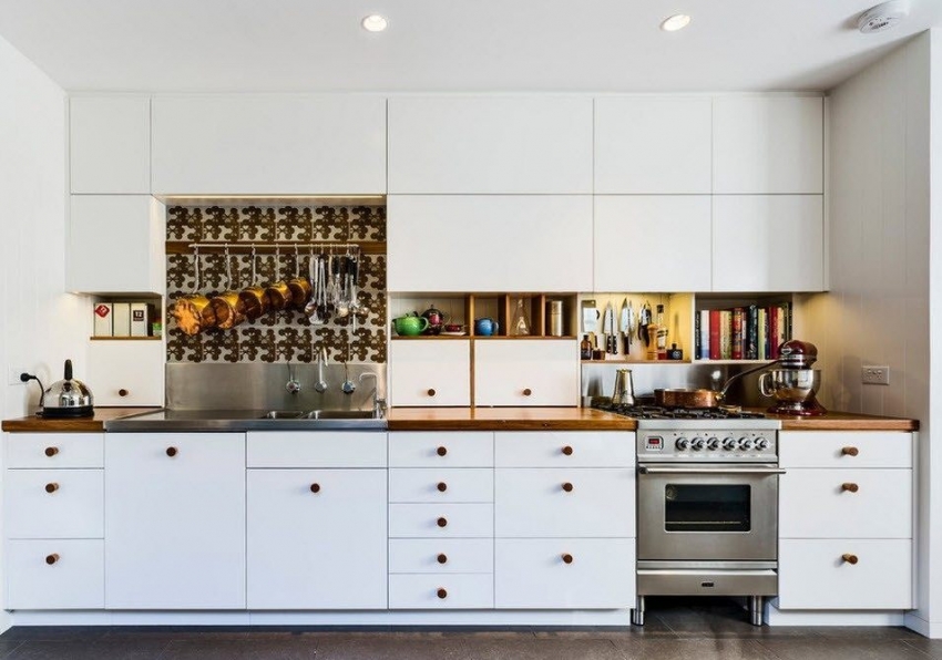 For classic white kitchen you can use tiles with interesting ornaments, which will make the interior more modern