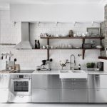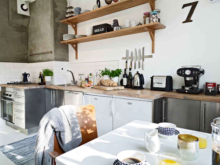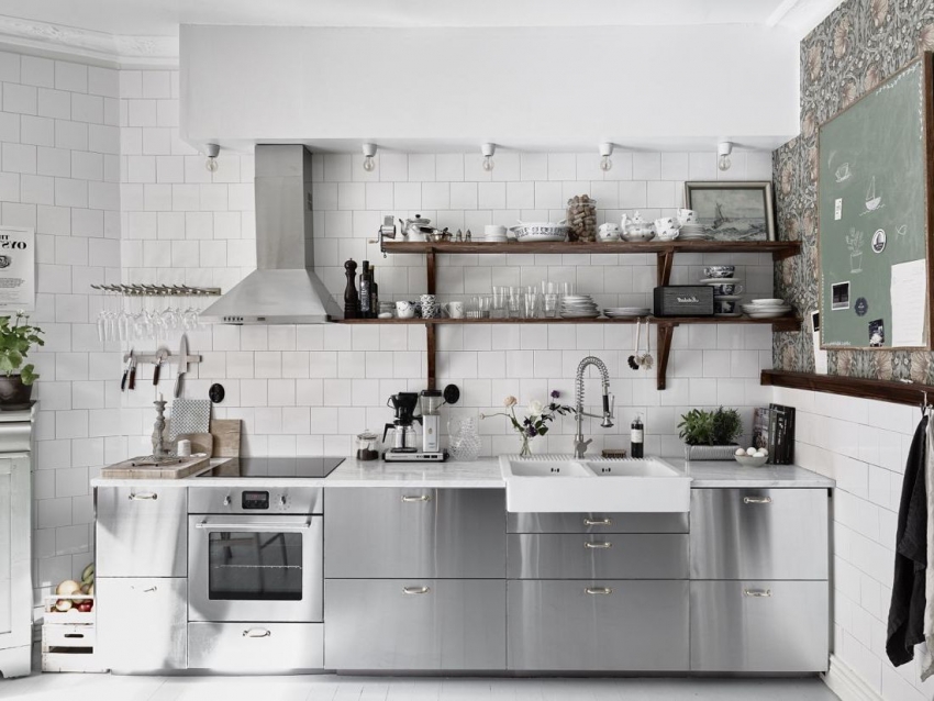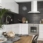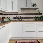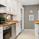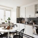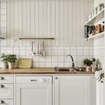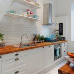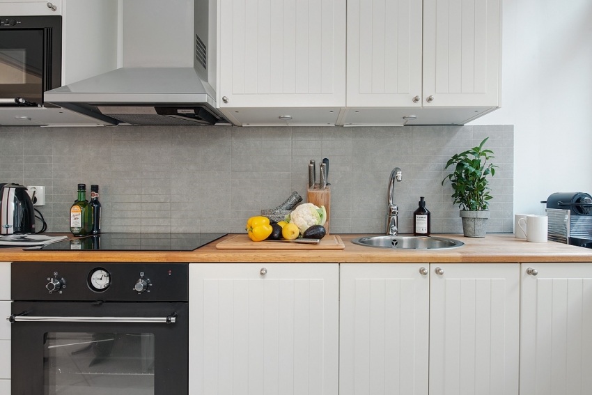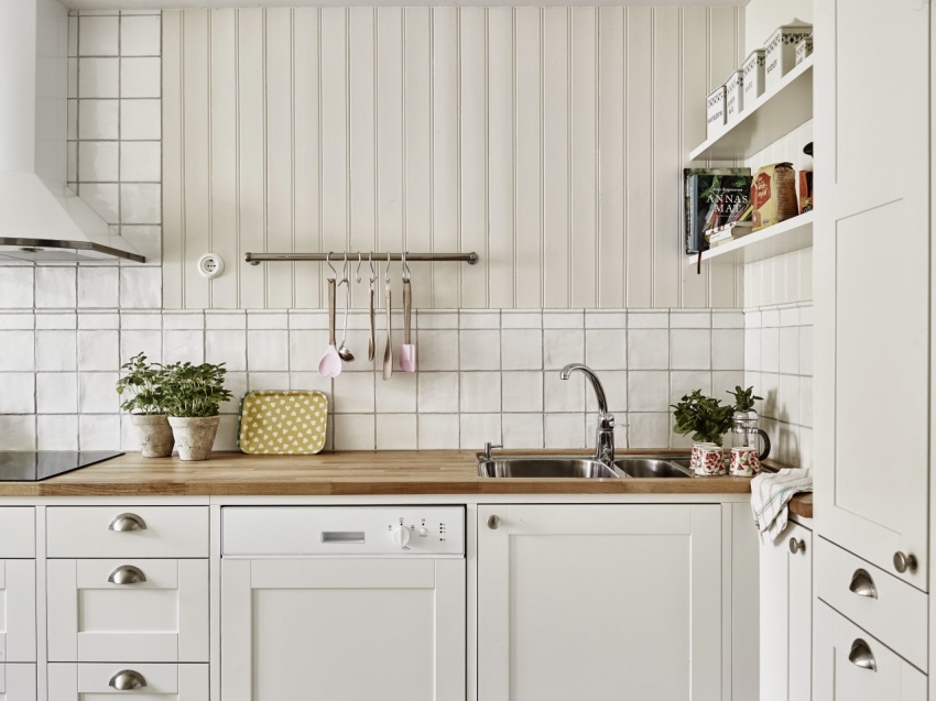 Square white tiles are often used for apron decoration Scandinavian style kitchens