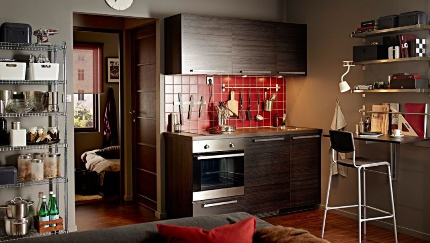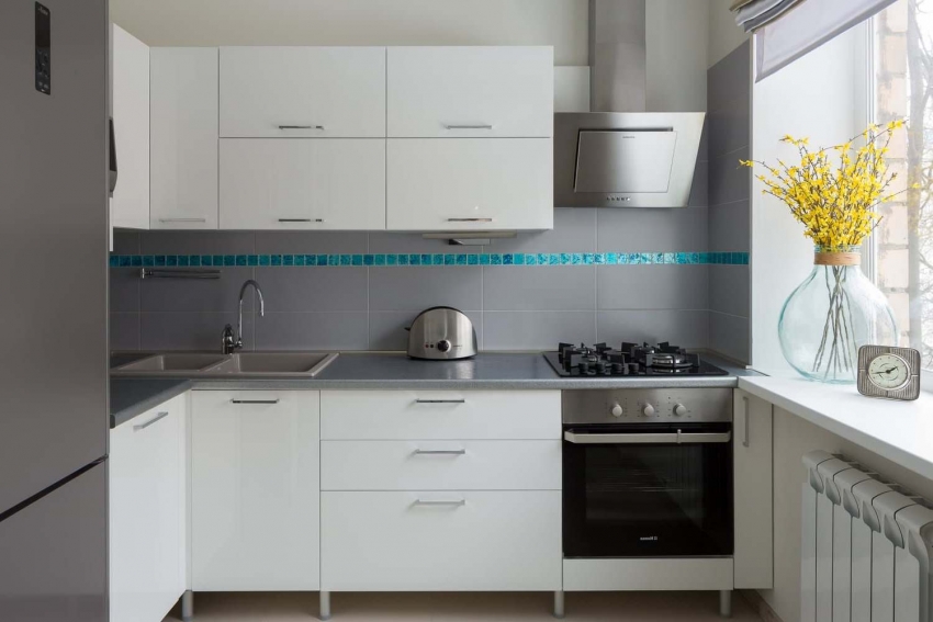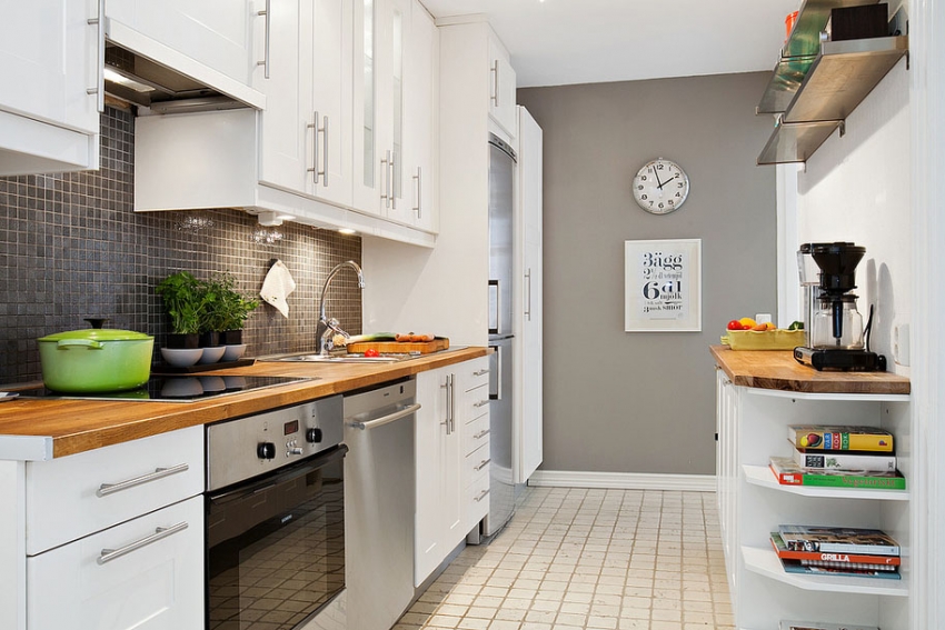 If you need to arrange a small kitchen, then large tiles will look inappropriate.Despite the fact that the number of seams in such an apron will be less, the surface will be visually cluttered, which means that the whole kitchen will look even smaller.