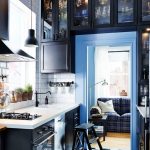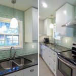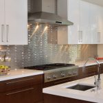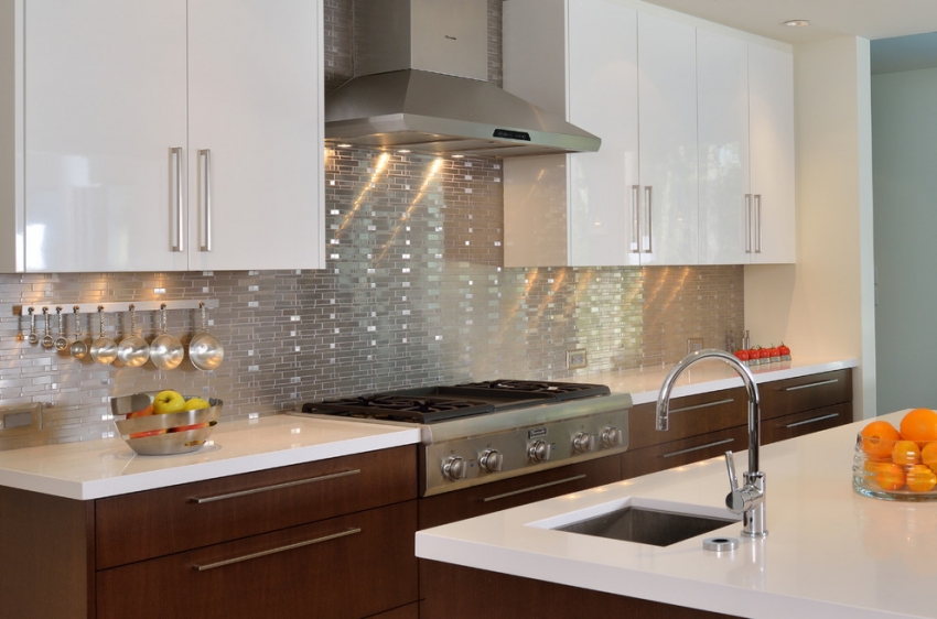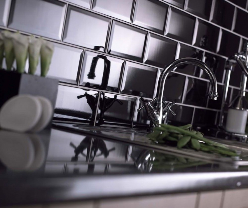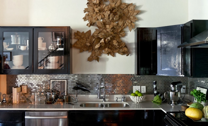 Using mirror tiles for an apron allows you to visually expand the space of the kitchen