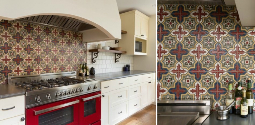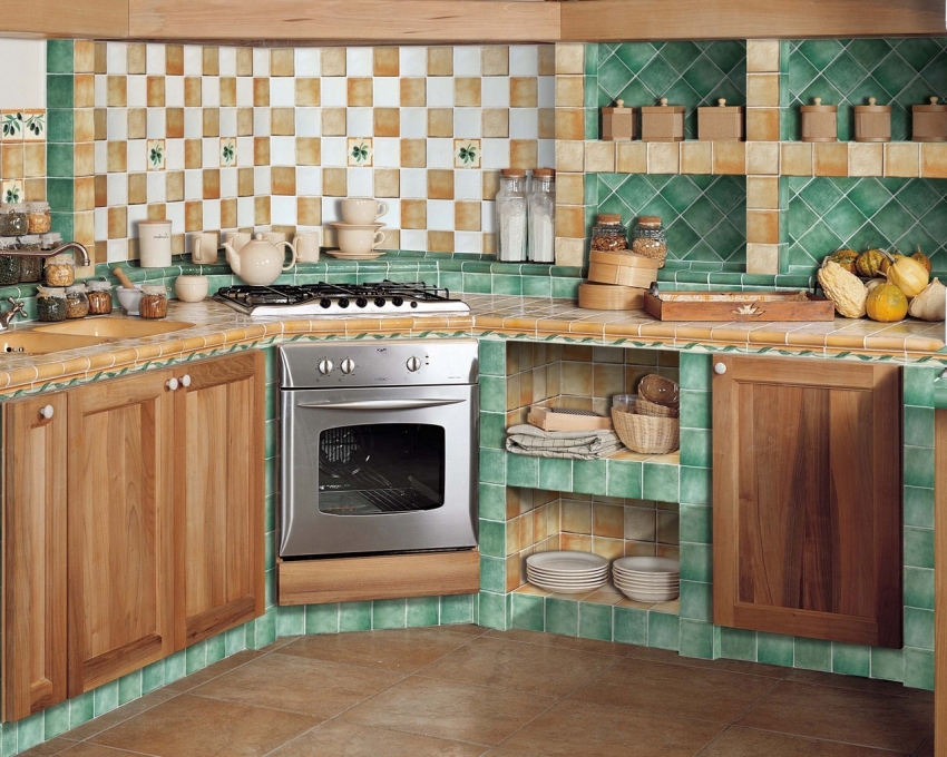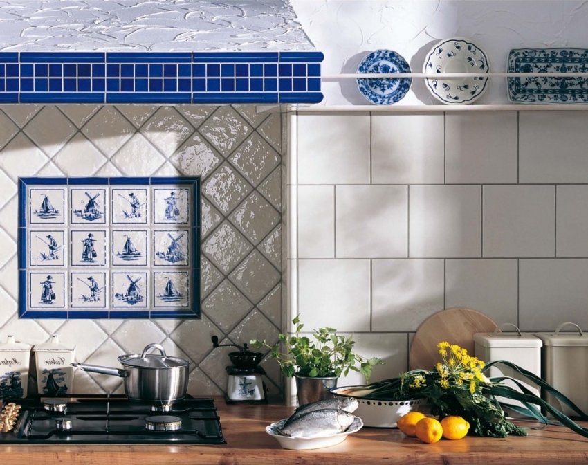 Decorative panels made of ceramic tiles are often used for decoration country style kitchens