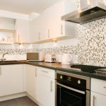 Such a small tile looks great in a small kitchen, visually expanding rather than cluttering the space. In addition, if the kitchen unit is small, then such a tile will look as organic and natural as possible.