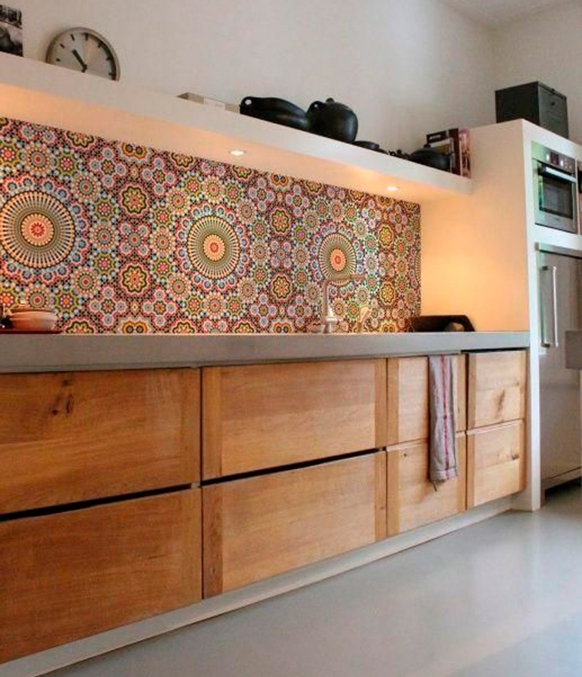 Tile decorative panel Is also a fairly common way to decorate a surface. This solution looks especially good if the design of the kitchen is in Provence, country or classic style.