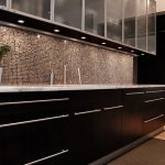 Kitchen apron, lined and standard size tiles, are much less common than any of the options above. The thing is that such a tile almost always requires a rather complex trimming, which allows the elements to organically fit into the interior.