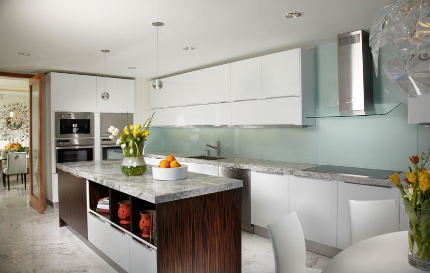Many people think that a glass backsplash for the kitchen is the ideal solution, since it can protect the wall from splashing water and grease. At the same time, the glass is easily washed and can serve for a long time. So, among the main requirements that this material fully meets, it is worth noting:
