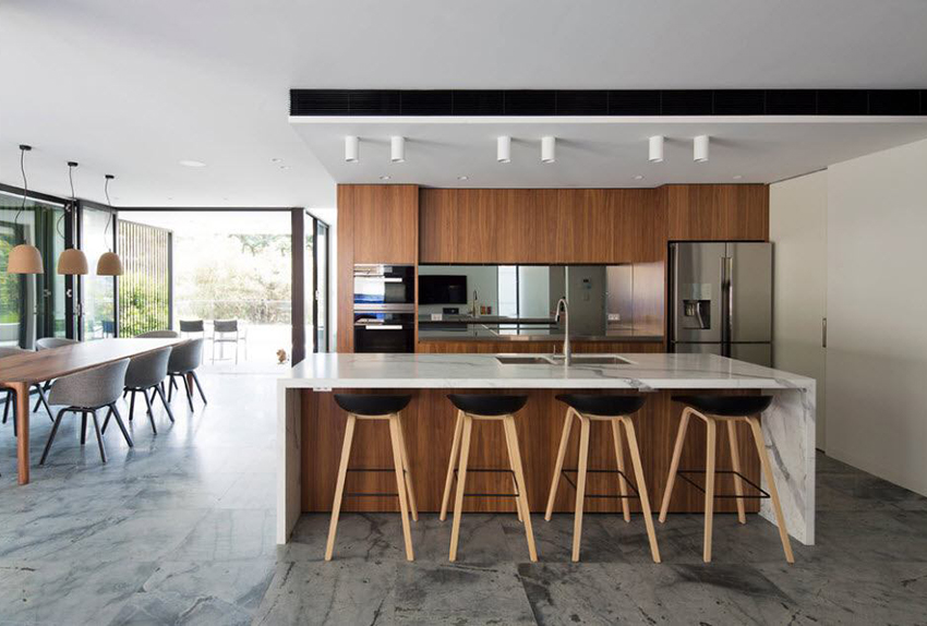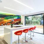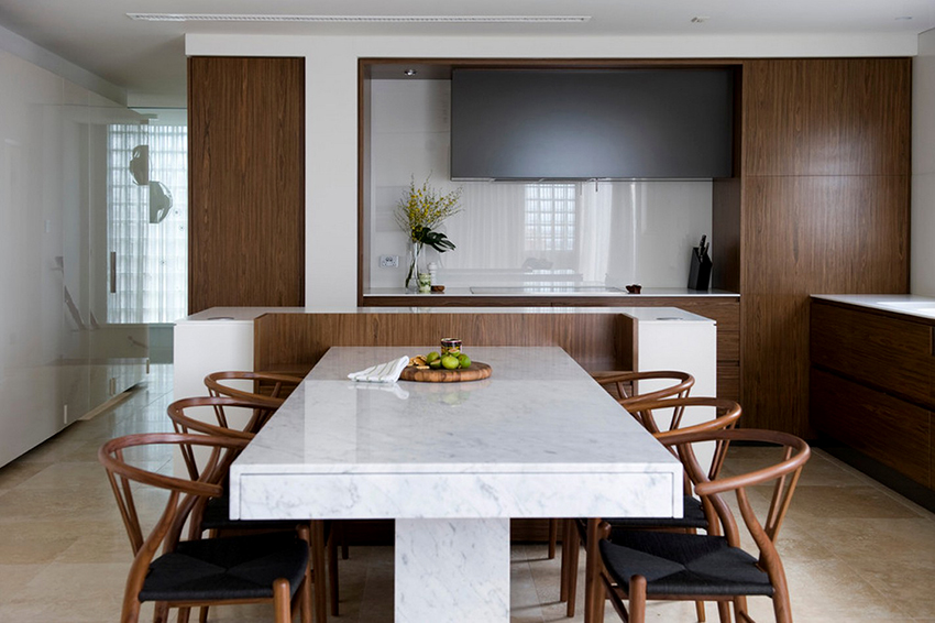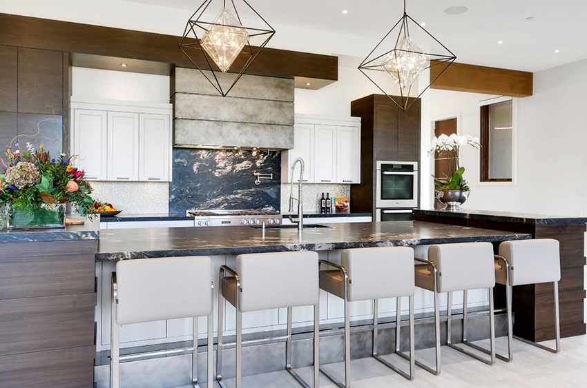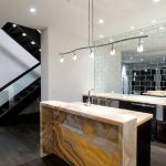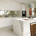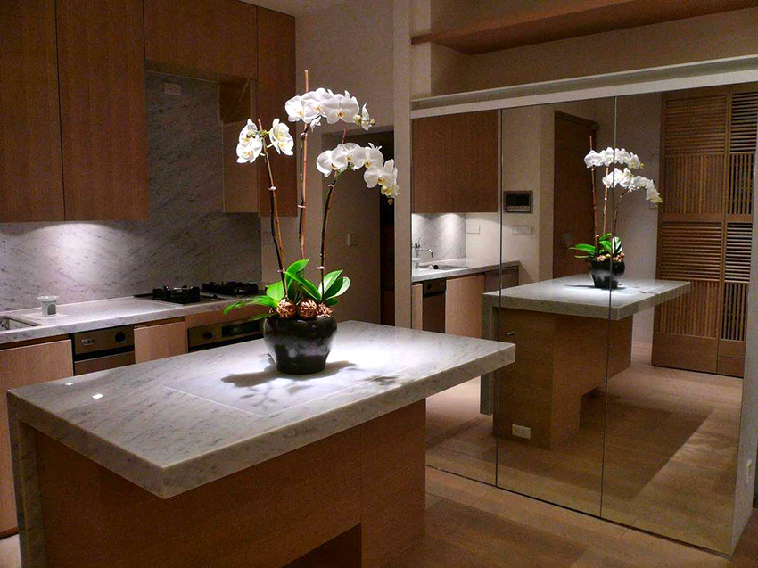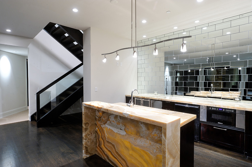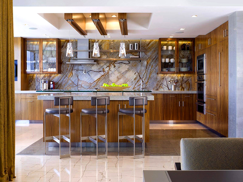 To get a solid and beautiful interior, you can support the design of the onyx kitchen apron by hanging a decorative object made from the same material on the wall. This stone has a translucent structure. By combining this material with LED backlighting, you can achieve an interesting effect.