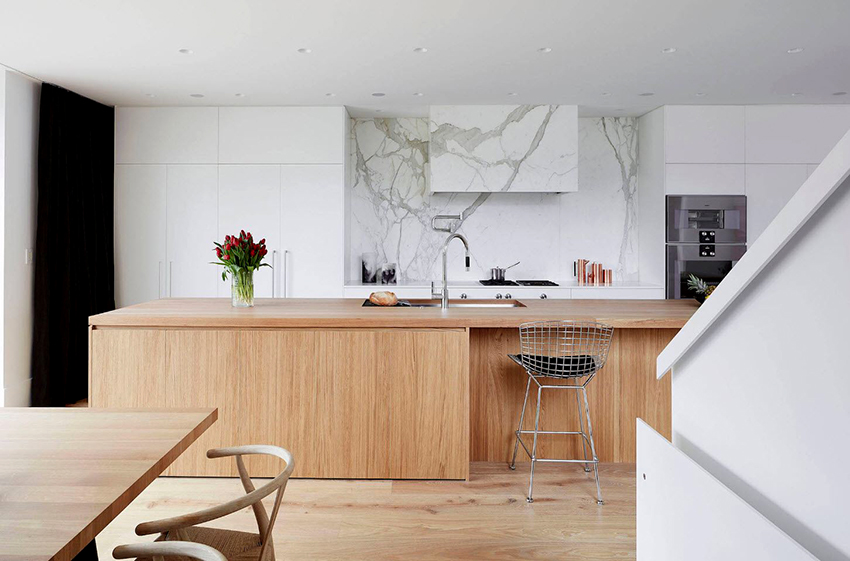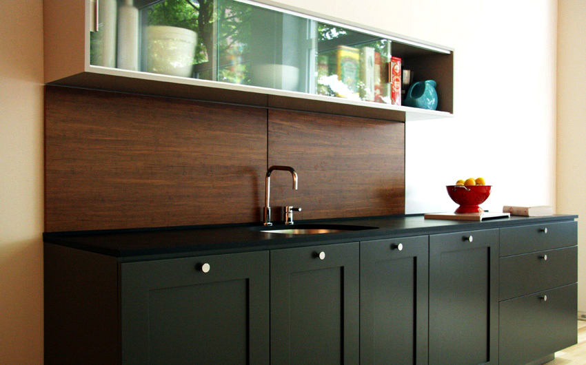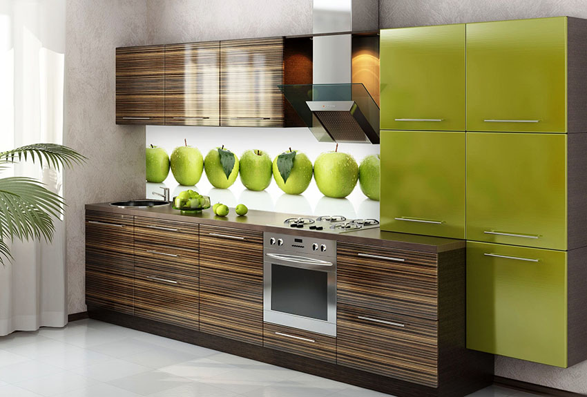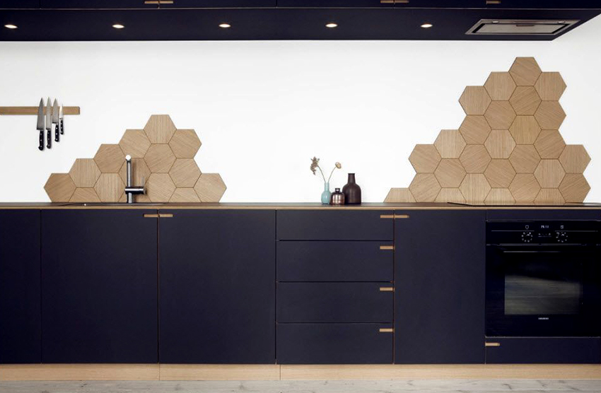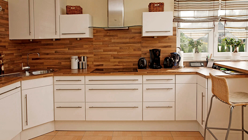 On the Internet, you can often find pictures of aprons in the kitchen with a beautiful wood design. Eco-friendly and natural interiors combined with modern appliances and furniture look very stylish. However, natural wood is not used to decorate the kitchen work area for several reasons.