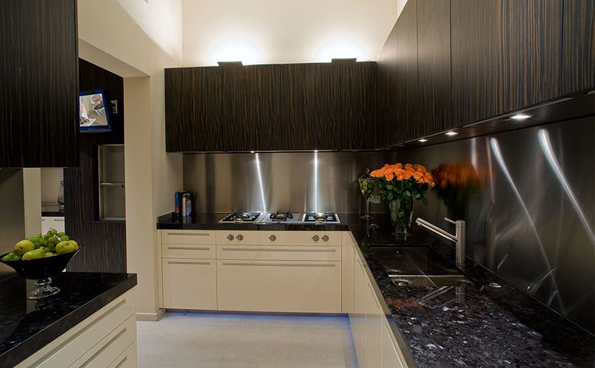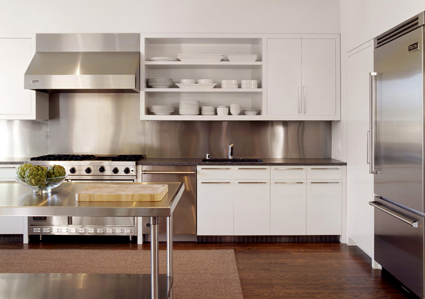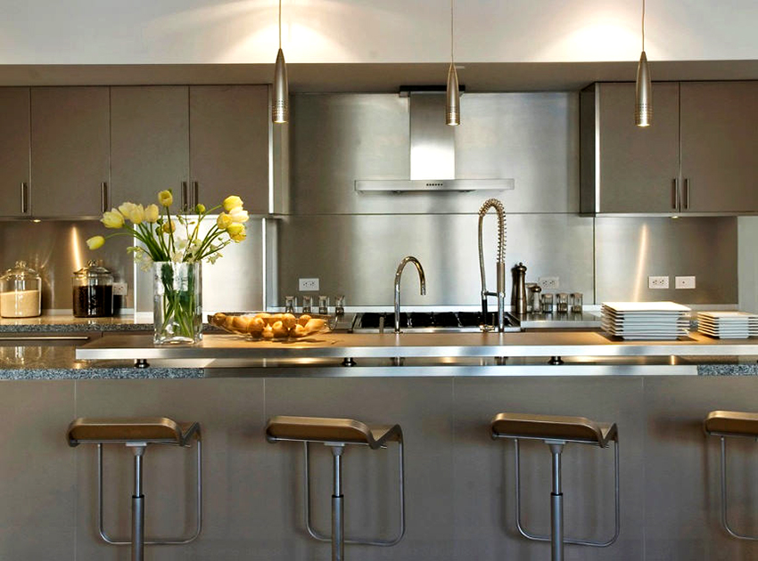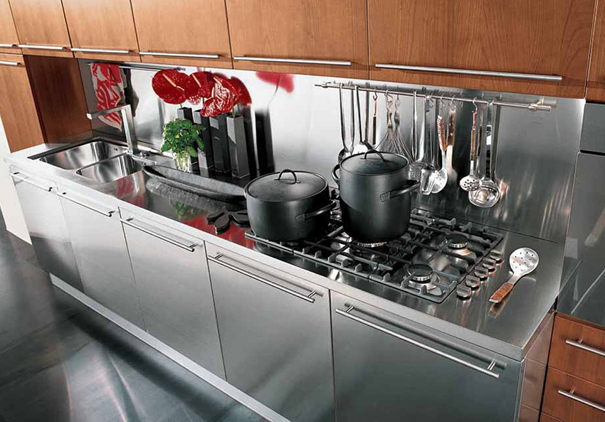 - 1.9 Advantages and disadvantages of stylish metal kitchen aprons: steel panels