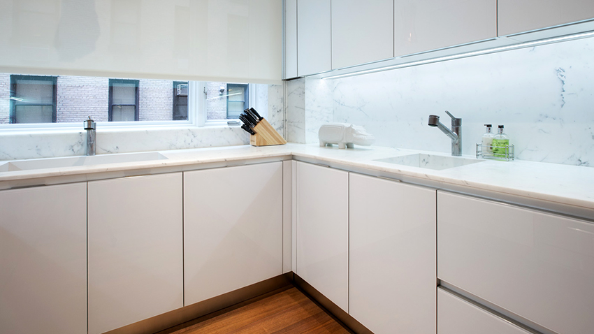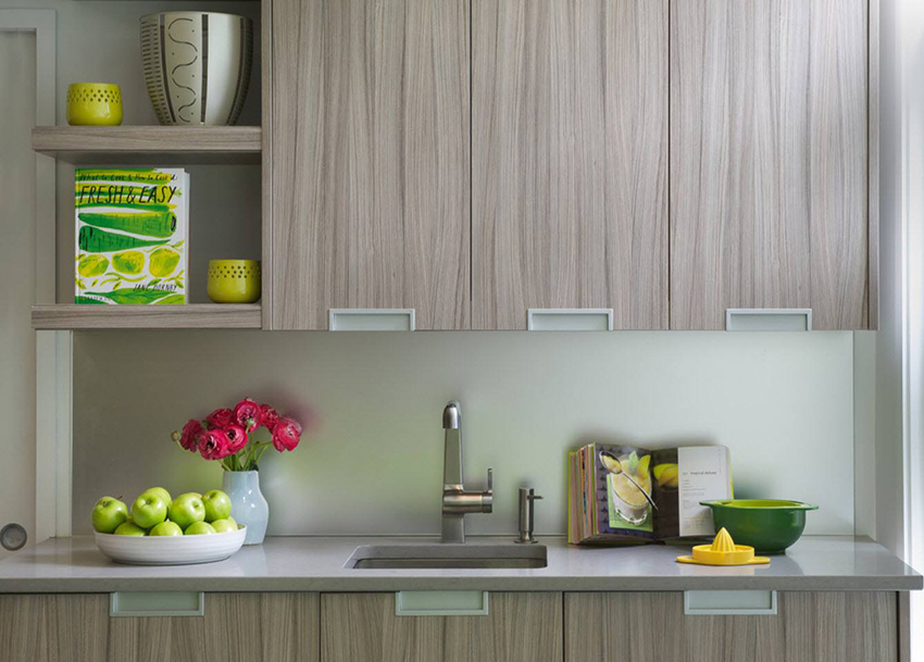 Given that MDF panels are sensitive to moisture, this coating requires special care. The finish will suffer not only from constant contact with grease and water splashes, but also from regular cleaning, especially if cleaning agents are used.