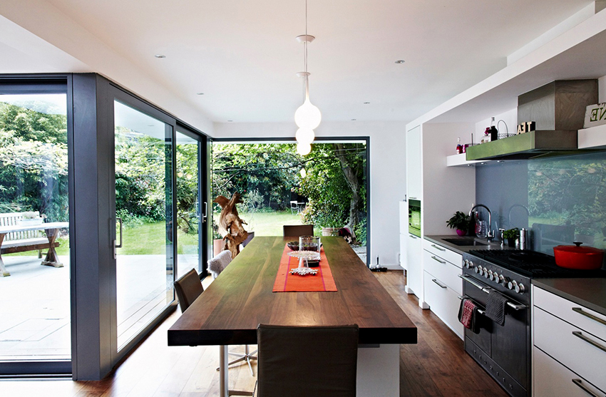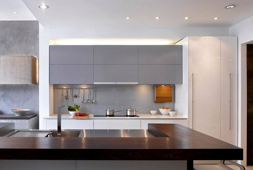 This finishing option for the work area has been used relatively recently. Despite this, numerous photos of glass aprons in the kitchen prove how successful and relevant this design is. The cladding for the wall between the headset with a glass surface is called skinale. Due to its advantageous characteristics, the finish can compete with tiles in terms of convenience and practicality.