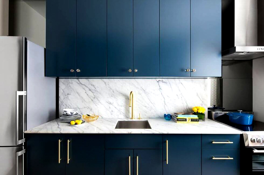 Usually, the design of the apron is selected taking into account the design of the countertop in the kitchen, although this is not necessary. Both of these elements can be made from the same material, such as natural or artificial stone. If this is not possible, it is not difficult to choose a finish for the apron that is as close as possible to the countertop in texture and color.