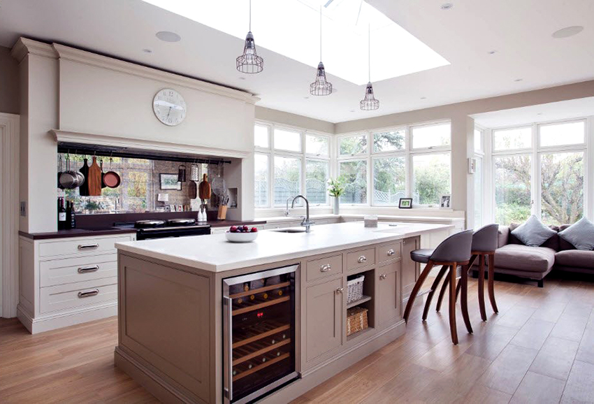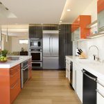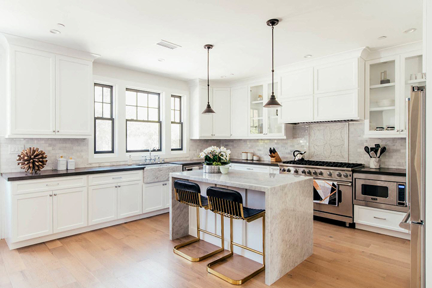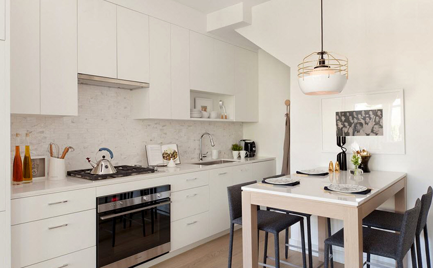 Any kitchen can be divided into two functional areas: dining and working. One of them is used for eating and resting, and the second is used directly for cooking. The work area consists of a gas or electric stove, sink and countertop. These elements are usually installed against a wall next to each other, forming a single line.