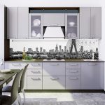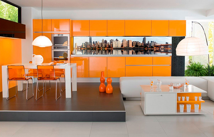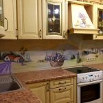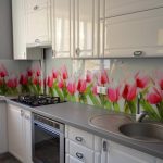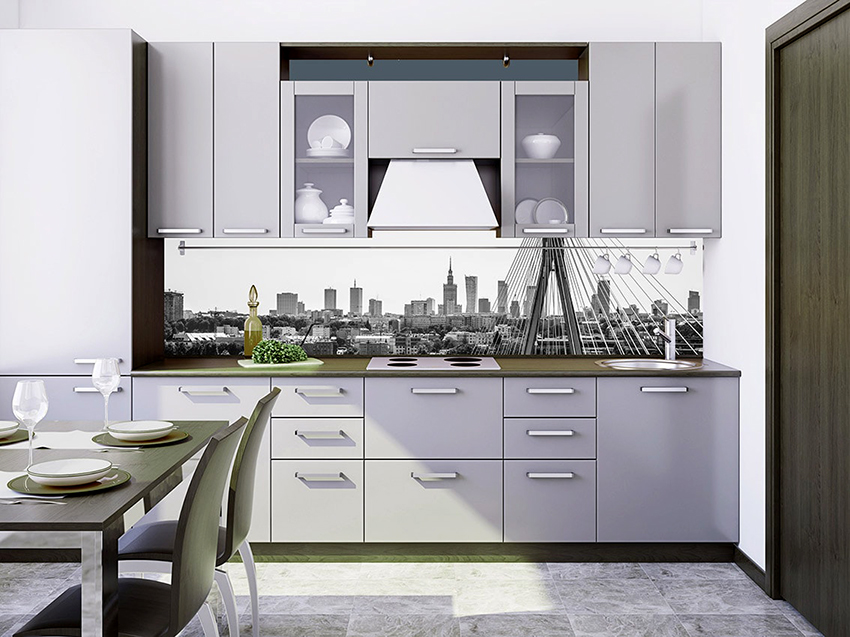 The design of monolithic aprons is based on images. This category includes plastic, glass, MDF and chipboard panels. When buying such products, one should not rush to choose a picture: an apron for the kitchen must necessarily fit into the atmosphere of the room, otherwise the integrity of the interior can be violated. To check how well the chosen option is combined with the design of the kitchen, you can print the image you like on paper and attach it to the wall.