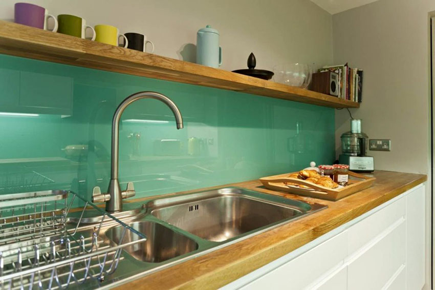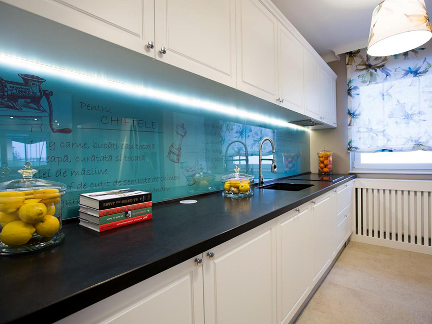 - The smooth surface is good at repelling dirt. Even if you do not clean the working area in the kitchen for some time, the glass of the apron can be easily washed at any time to its original state.