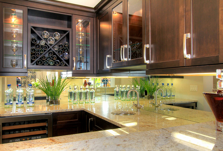 Quartzite aprons are as bright and colorful as those made from onyx. The difference between these materials lies in several nuances. First, quartzite aprons are cheaper than onyx aprons. Compared to granite, this material will be slightly more expensive. Secondly, quartzite is opaque, so you won't be able to use LED backlighting.