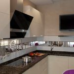 If you want to install a stylish and unusual version of a kitchen apron in the kitchen, you should pay attention to products made of mirrors. This material is very rarely used as a decoration for the work area, but it looks luxurious. Facet mirrors look especially impressive in the interior, however, it is much more difficult to clean a faceted surface than a smooth one.