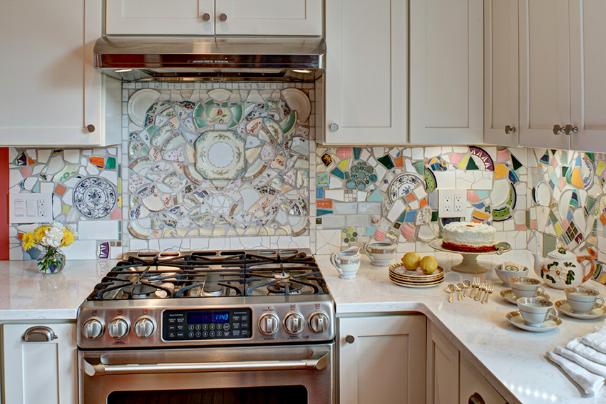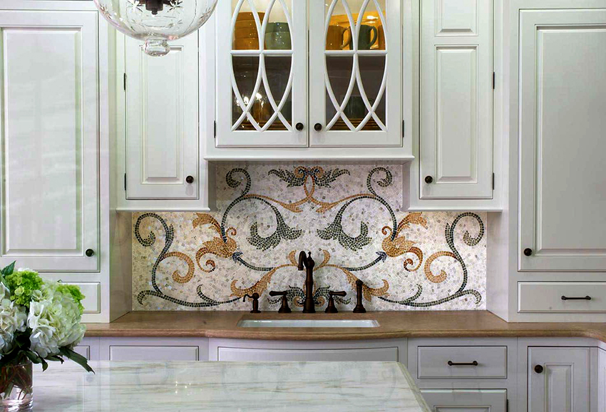 - 1.7 Unusual tile design on the apron in the kitchen: photos of mosaic products