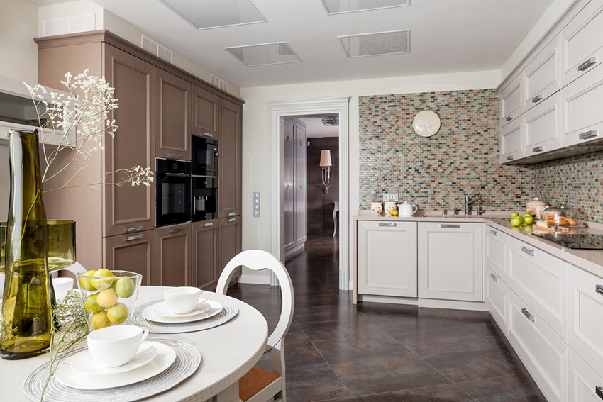 As you can see in the interior photos, backsplash tiles in the kitchen are the most common finishing options. In comparison with other materials, it has an impressive list of advantages.