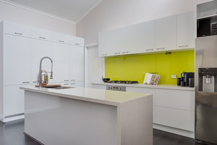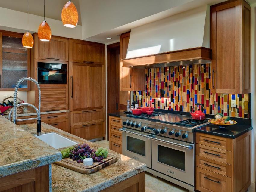 Disadvantages of a glass apron in the kitchen: photo examples of use