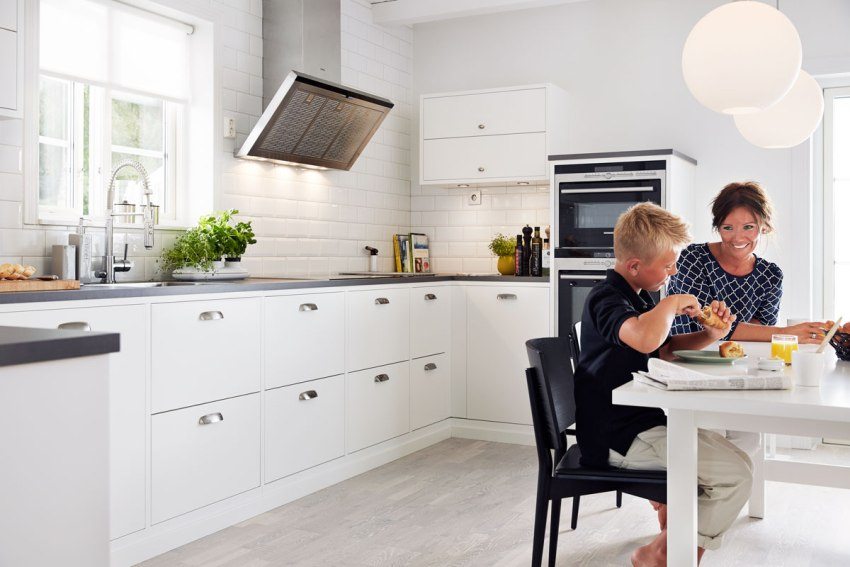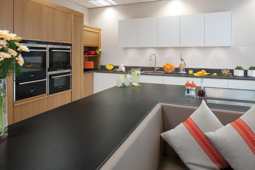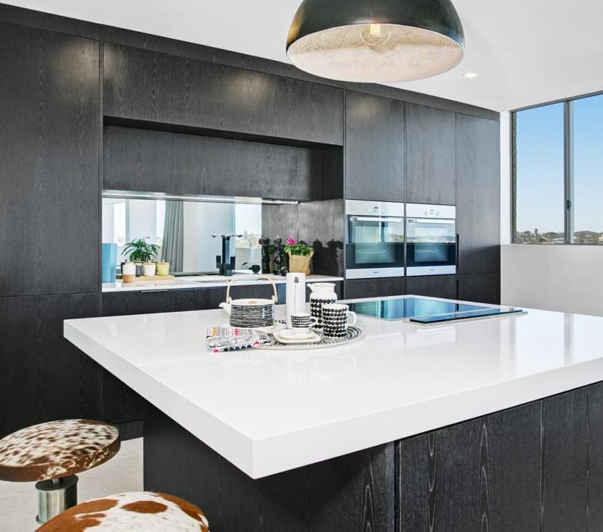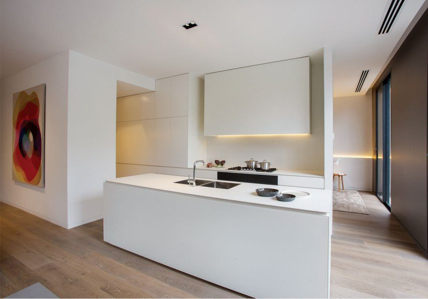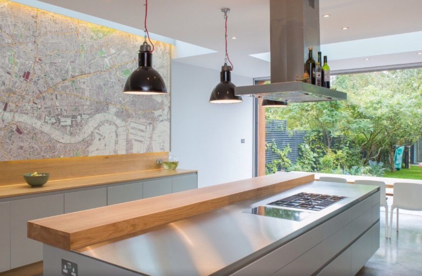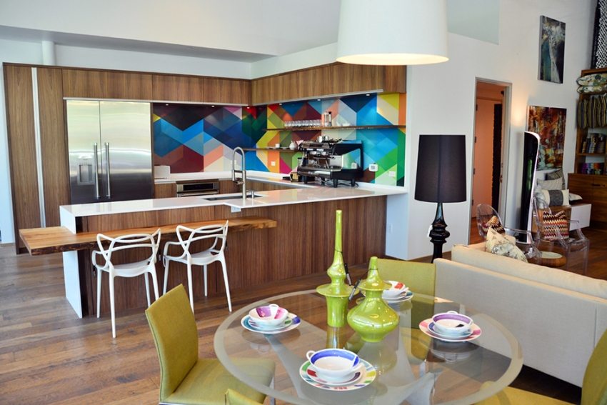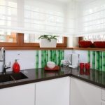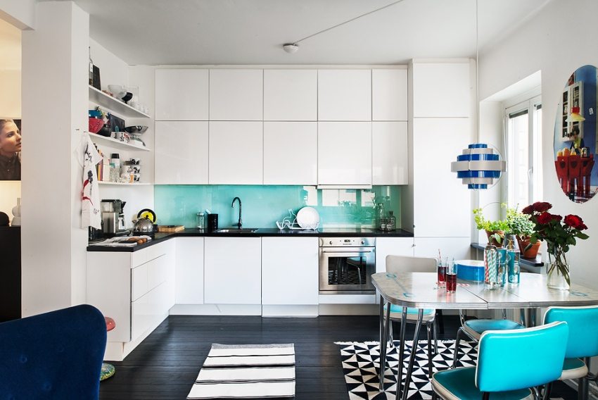 - one-piece glass surface in the kitchen visually increases the space, making the room more spacious and fresh;