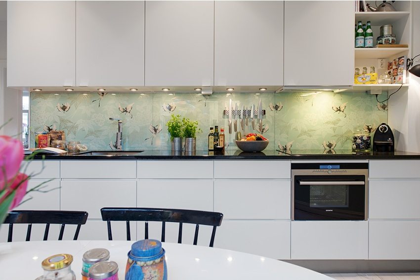 First, let's figure out what skinned and what are they for in the kitchen? It is customary to call skinali glass panels with a pattern applied to them, or simply plain. They are made to order, and therefore can be made in any size and color scheme.
