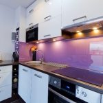 - glass apron goes well with any kind of lighting. You can see this in the catalog of kitchen skins on the manufacturers' websites.
