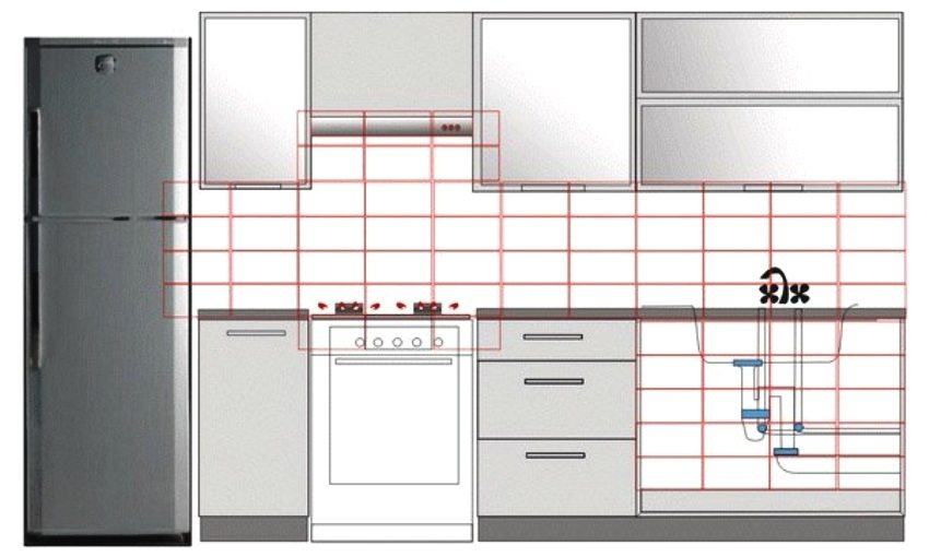 - if you plan to place a tile backsplash over the kitchen stove, then you need to put an additional 60-80 cm upwards. It is also better to leave allowances of 10-15 cm in width;