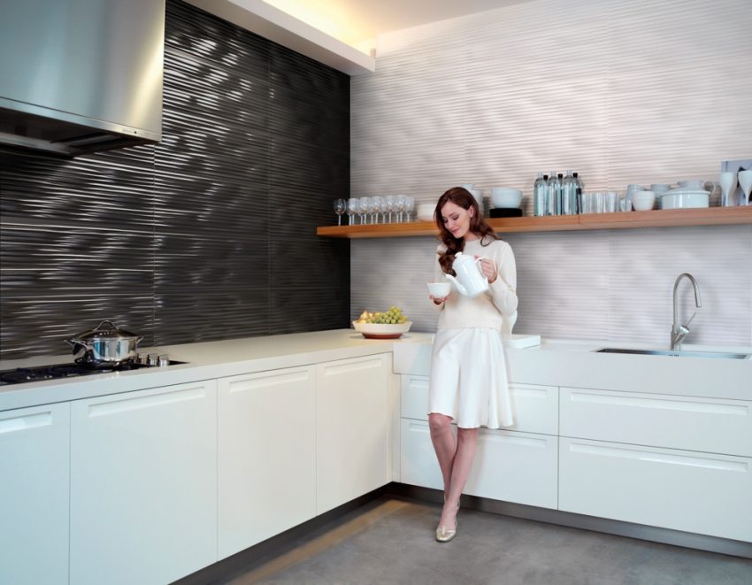 Aprons for the kitchen from ceramic tiles: photos and tips for choosing a material