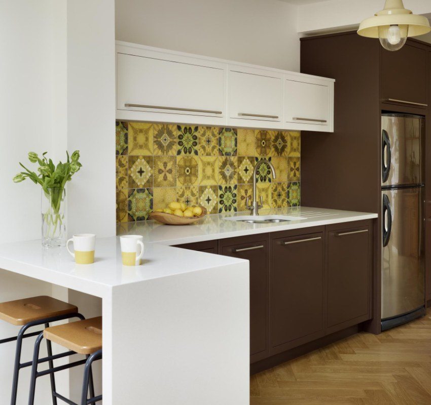 Helpful advice! Interior designers recommend not using images with more than three colors - this creates a cluttered feeling in the kitchen.