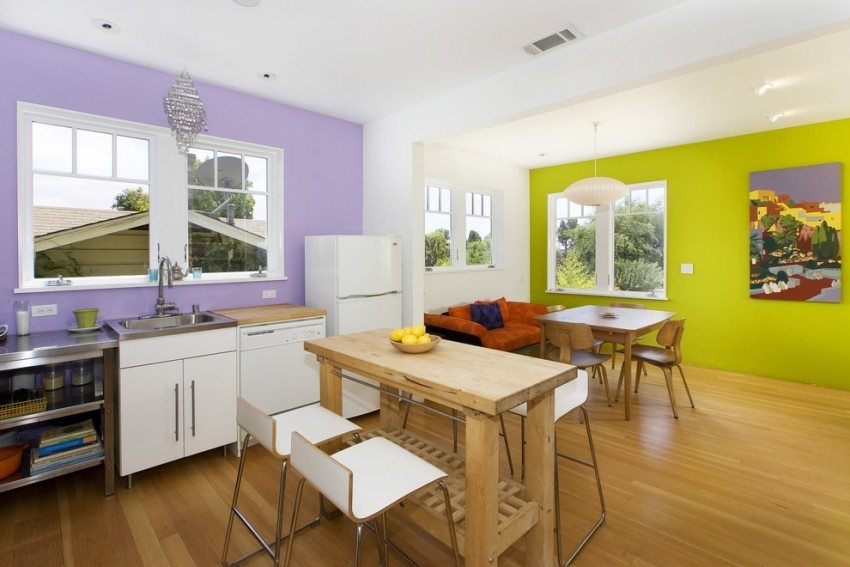 - it is worth highlighting small-sized interior elements with a bright color. Large objects, on the other hand, are better painted in calmer and more restrained colors;