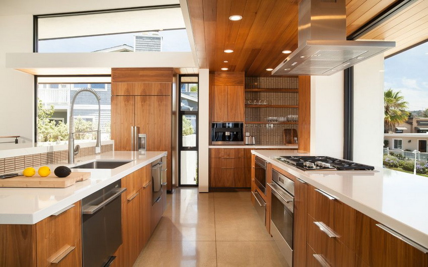 When creating a modern kitchen interior design, an important role is played by the decoration of the walls, ceiling and floor.