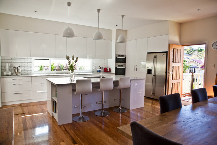 If the basis of the furnishings is a luxurious white kitchen in the Art Nouveau style, you can choose a dining set with a modest design. The best option is to organically complement some interior items with others, including the texture of finishing materials, exquisite window textiles and local illumination of individual zones with lamps of an original form. Nevertheless, furniture plays a leading role in the interior design of the premises - it is from the original furnishings that the expression "chic modern" originated.