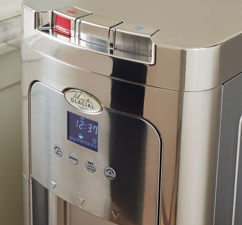 In size, this cooler is more like a refrigerator. The design provides for the bottom installation of the bottle, which greatly facilitates the process of its replacement. In addition, it is worth noting the attractive appearance of the device, because the bottle does not stick up and does not spoil the exquisite interior of the kitchen.